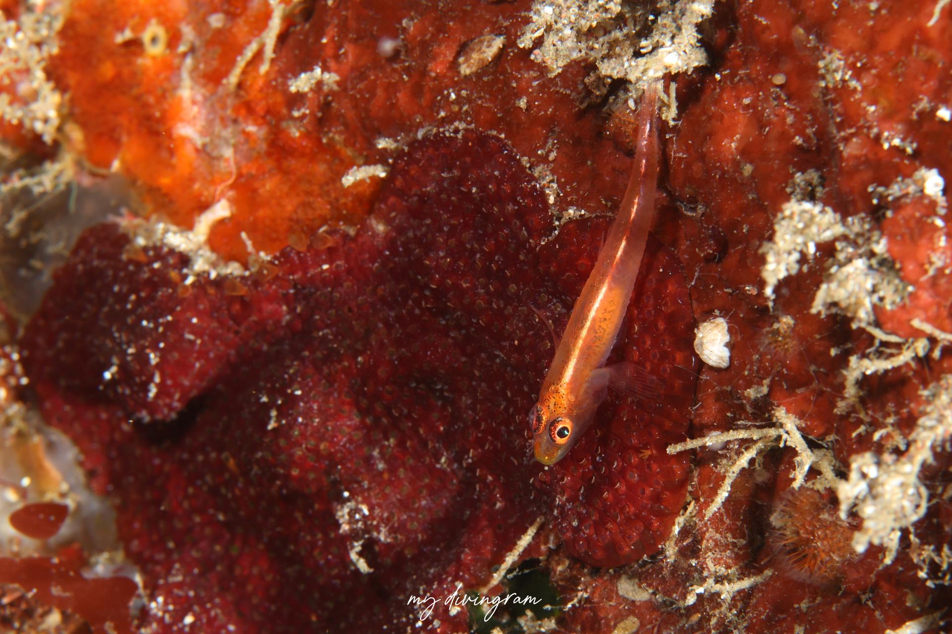 普通種だと思うのですが探すと意外と見つからないアカスジウミタケハゼ。