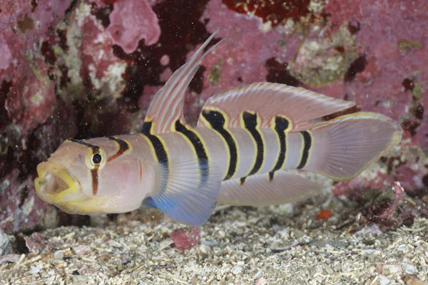 体の横帯が太平洋側のものは6本であるのに対し、日本海側のものは7本なのが有名なハゼです。