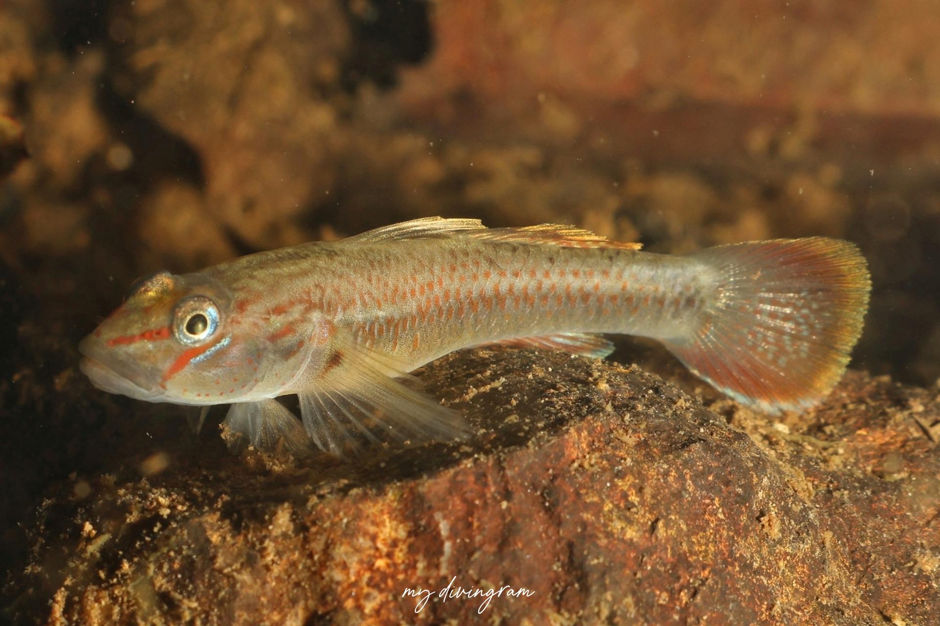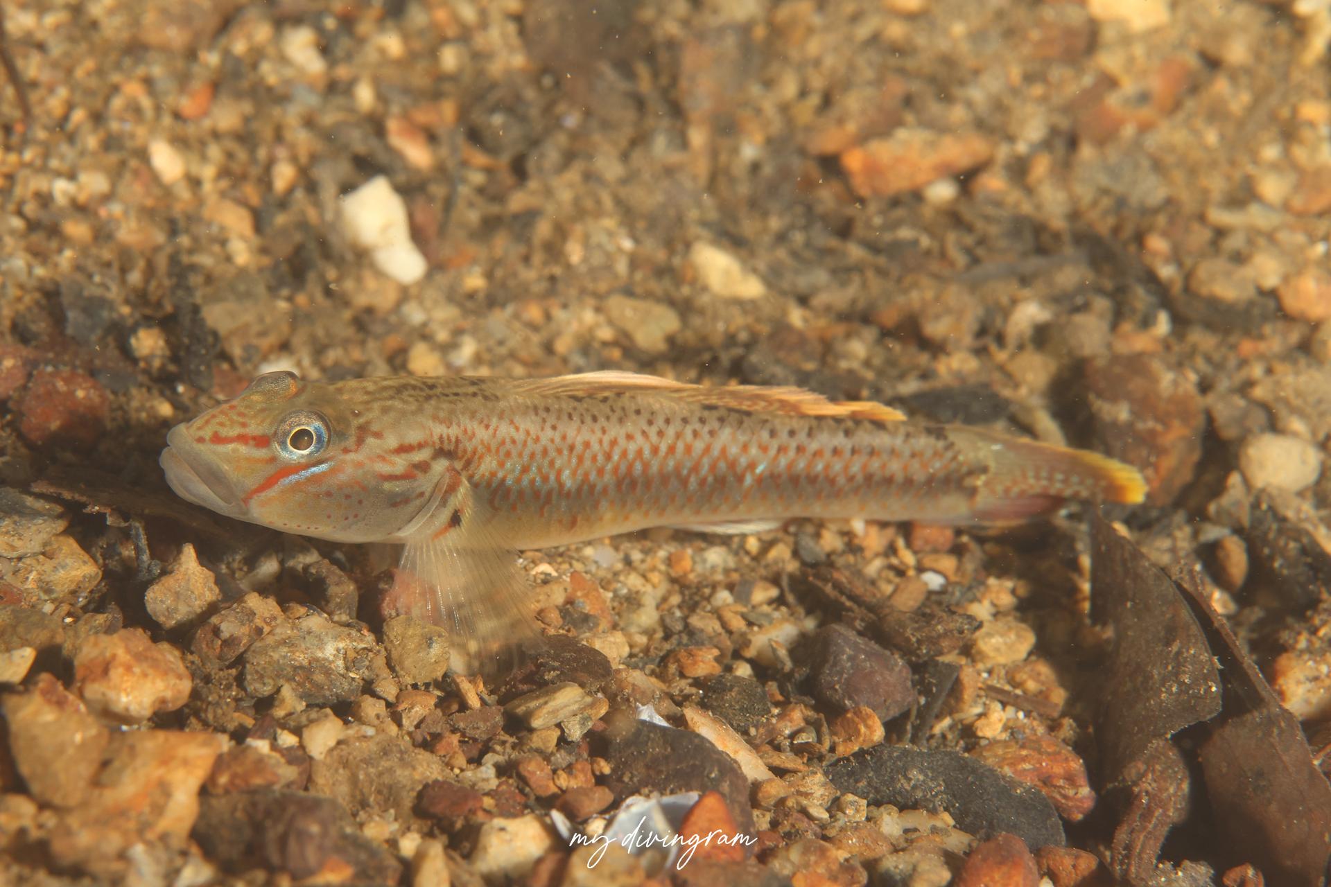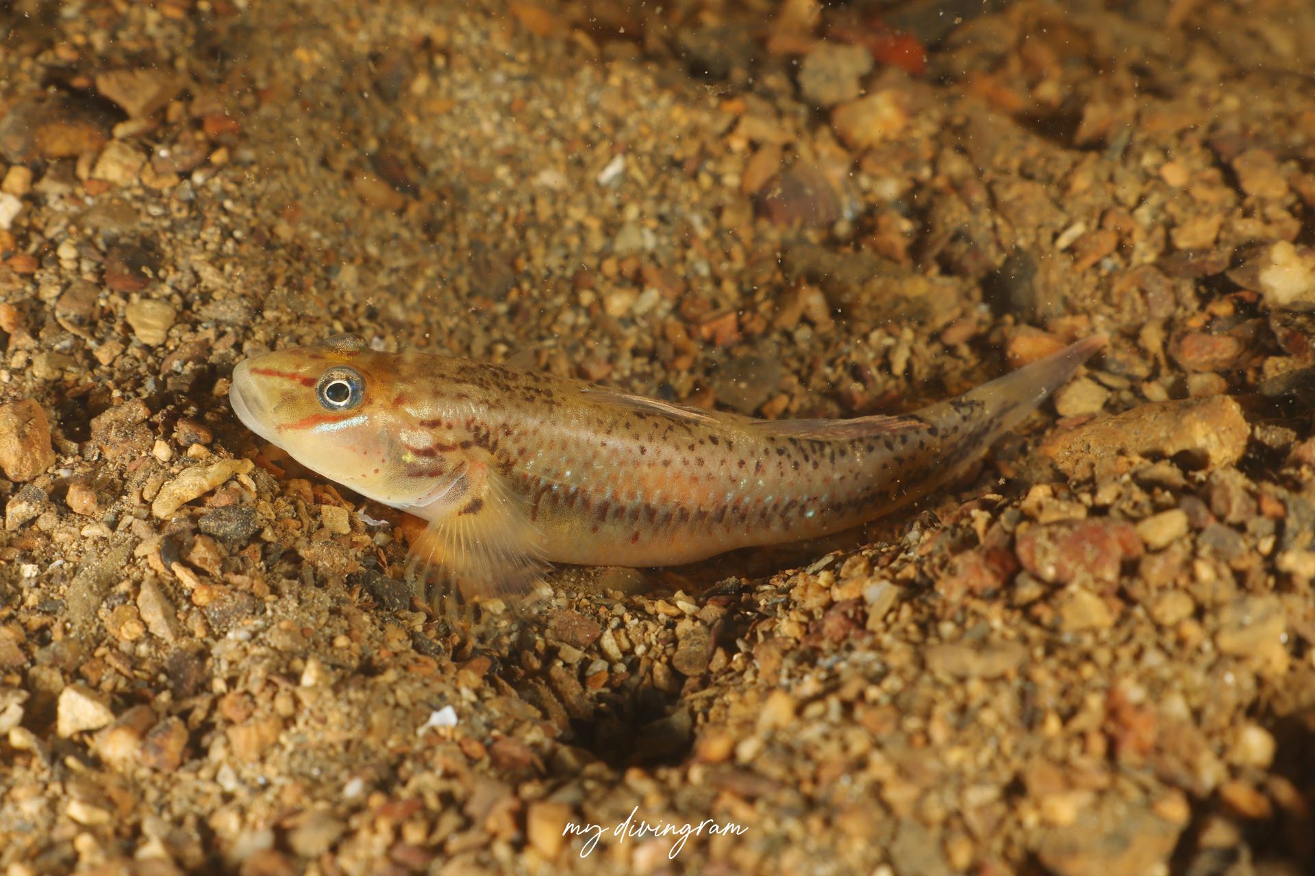 クロヨシノボリに酷似していますが、興奮時、体側にバツ印に交差する黒いラインが入らないこと、頭部と体側のプロポーションで見分けられます。