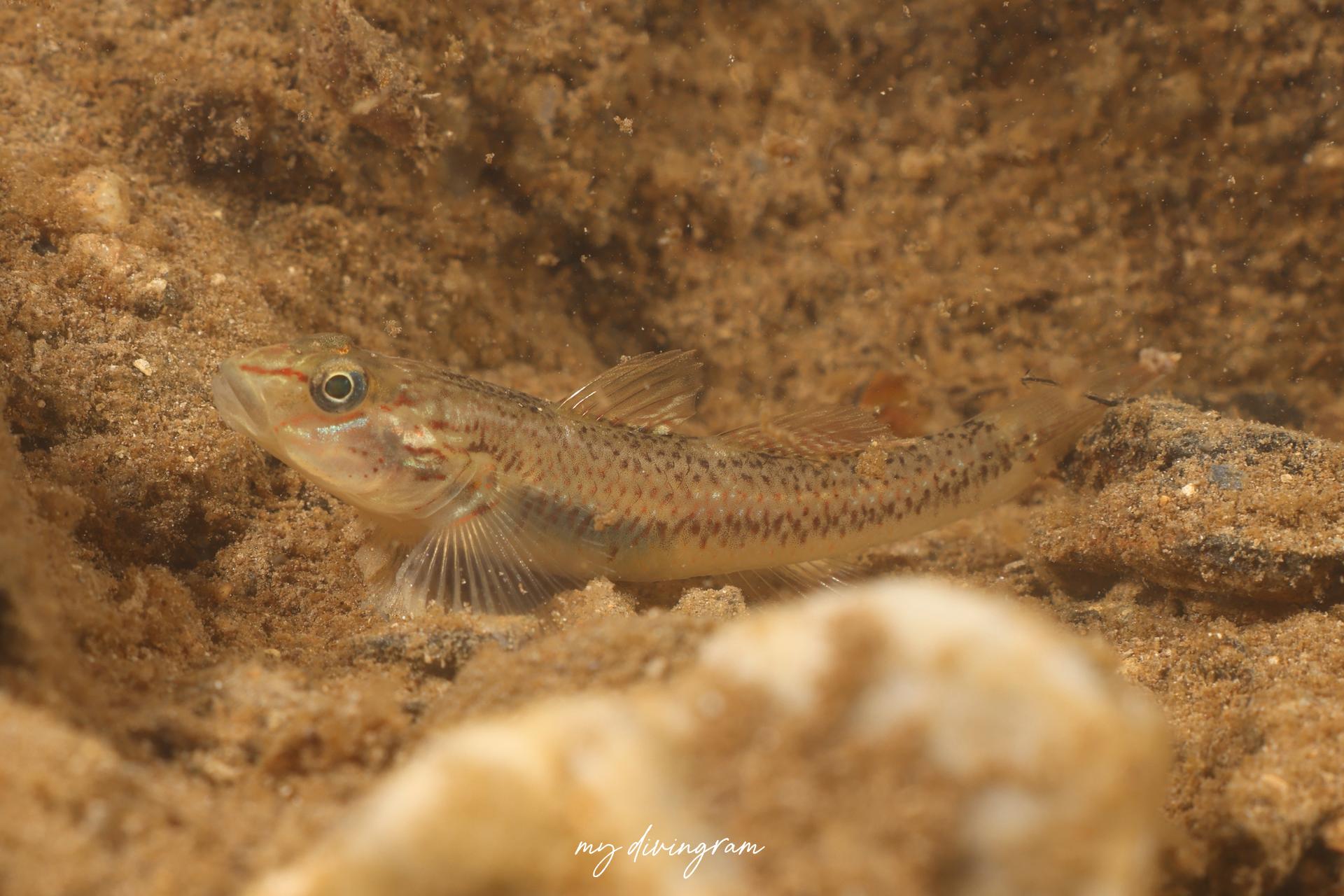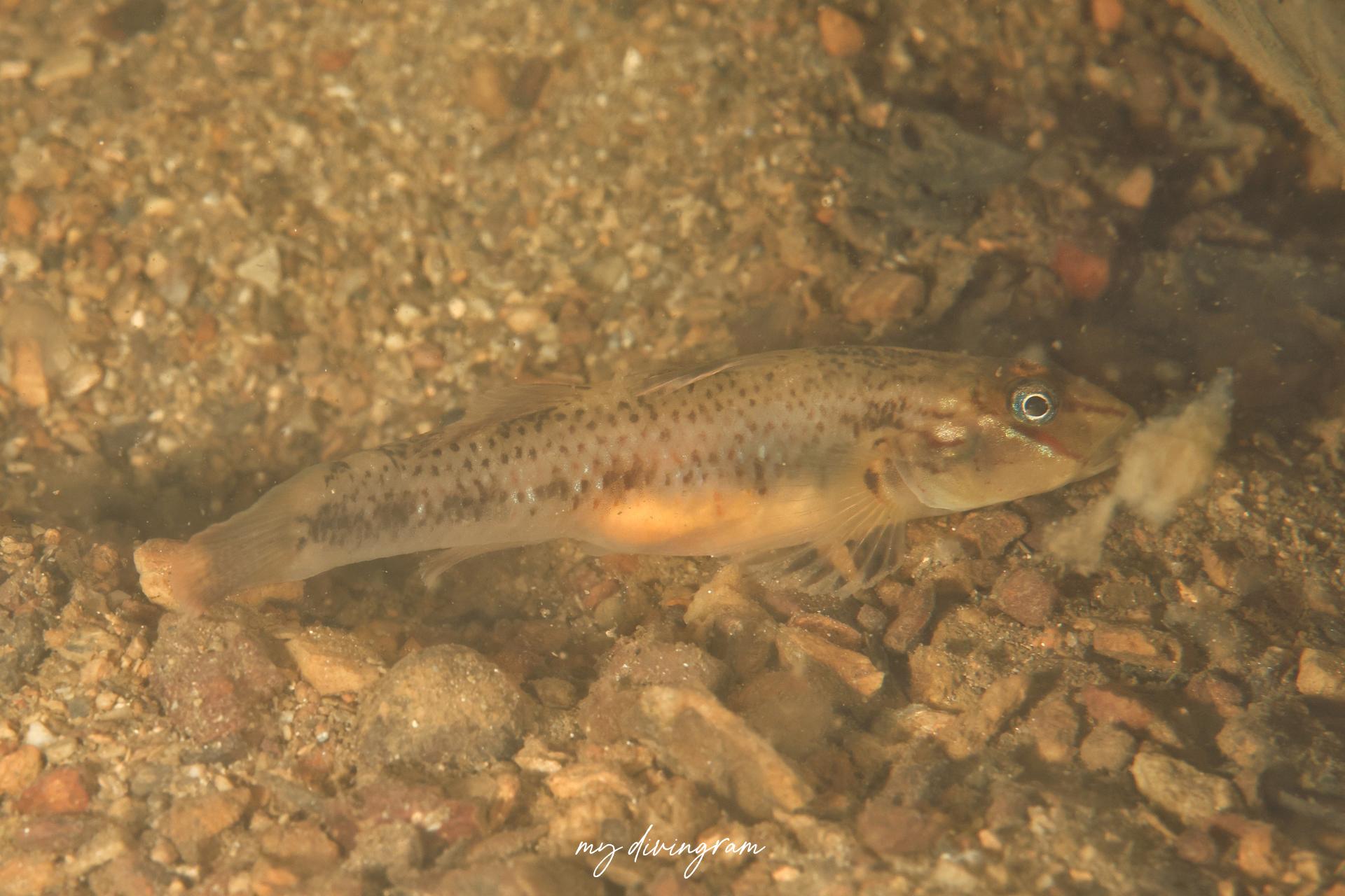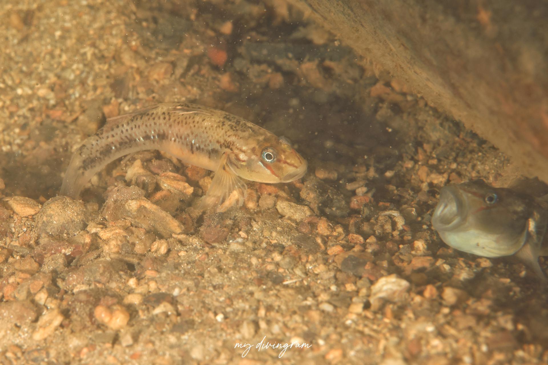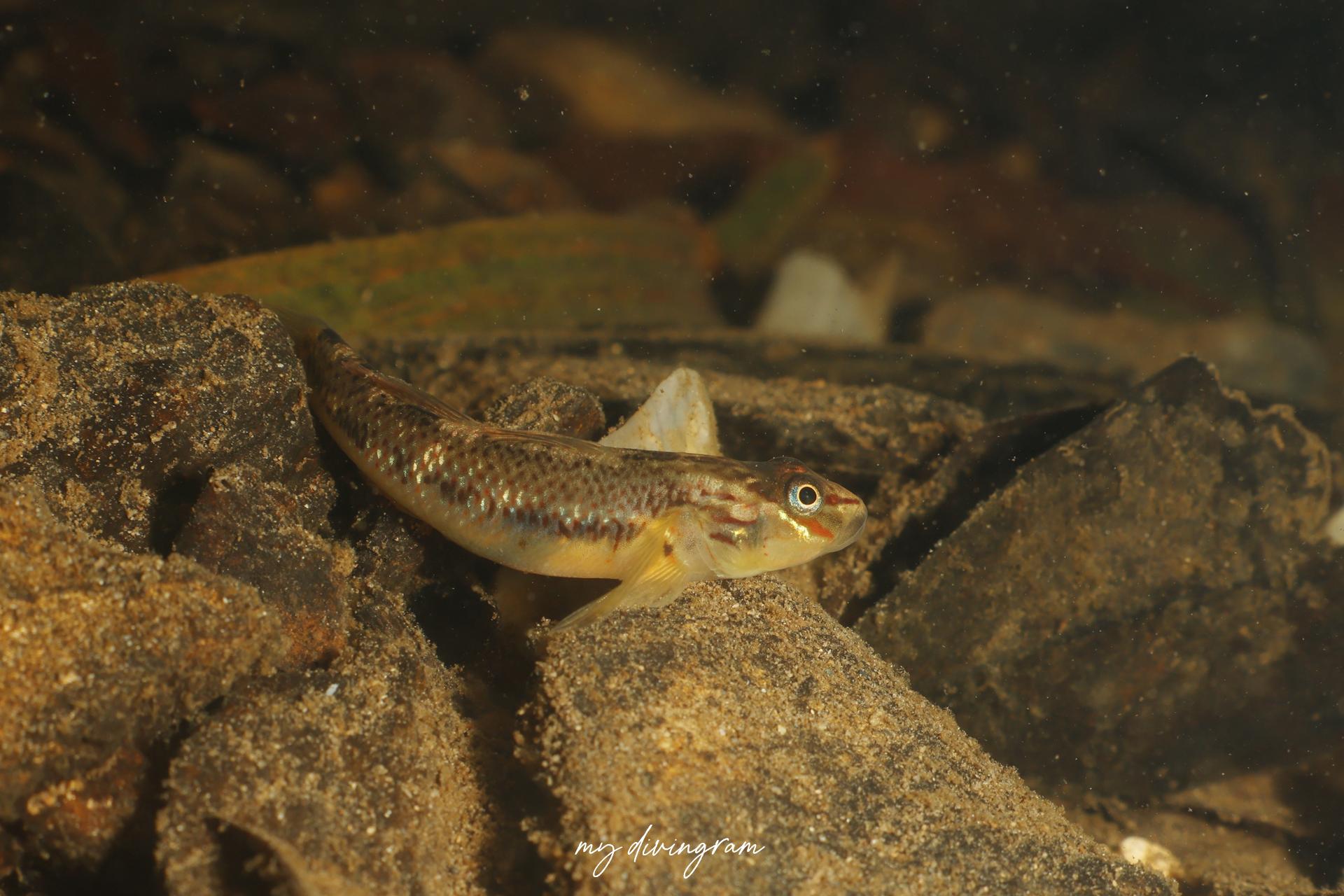 クロヨシノボリに酷似していますが、興奮時、体側にバツ印に交差する黒いラインが入らないこと、頭部と体側のプロポーションで見分けられます。