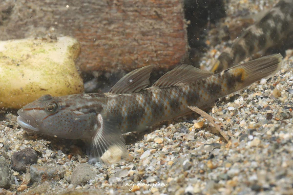 もう1種の固有種ビワヨシノボリとの簡単な見分け方は、頬に赤い斑点が散在するかどうかです。