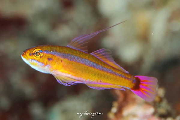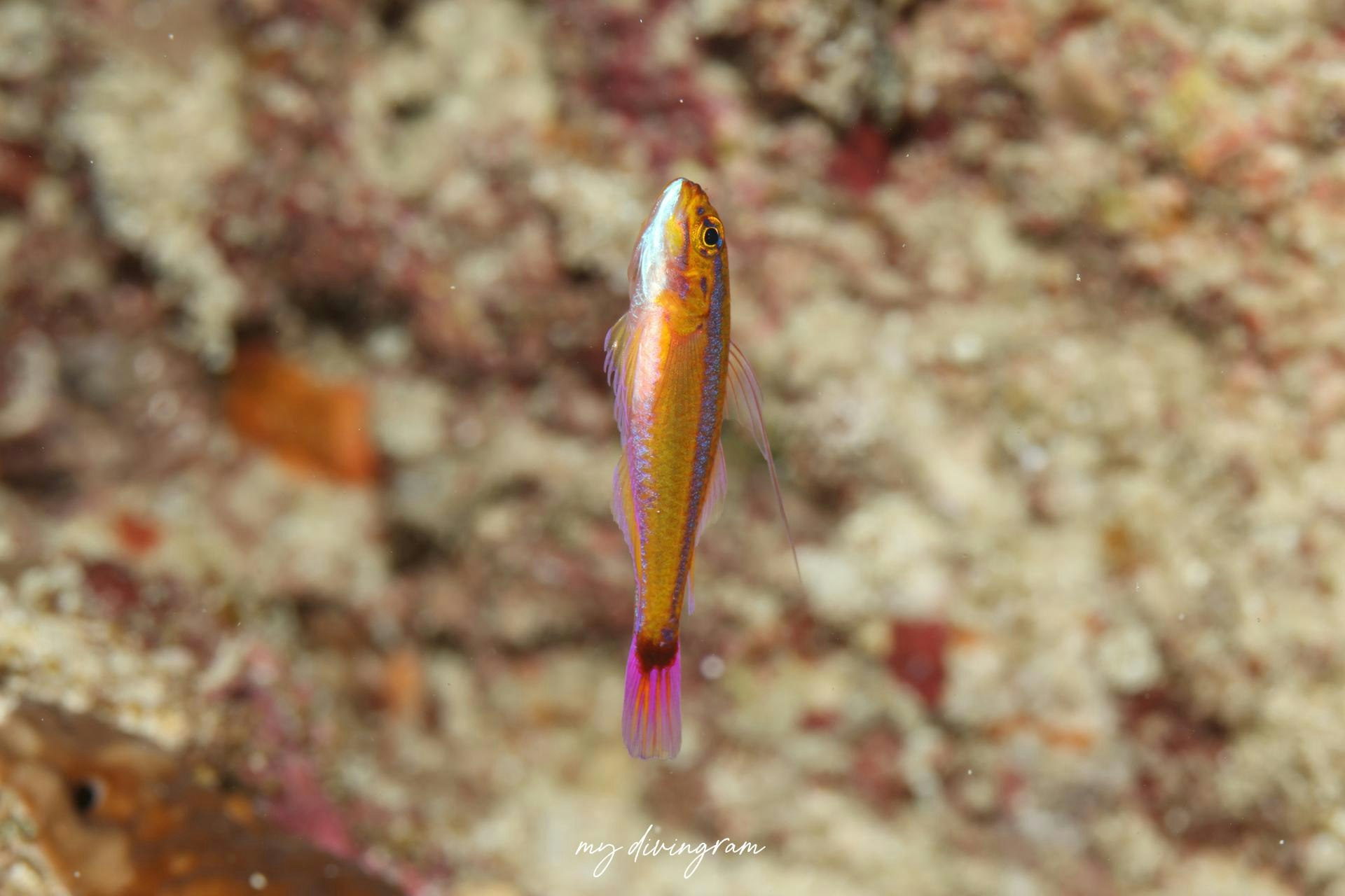 ホバリングする系ベニハゼの中では一際色彩が美しいアオギハゼ。