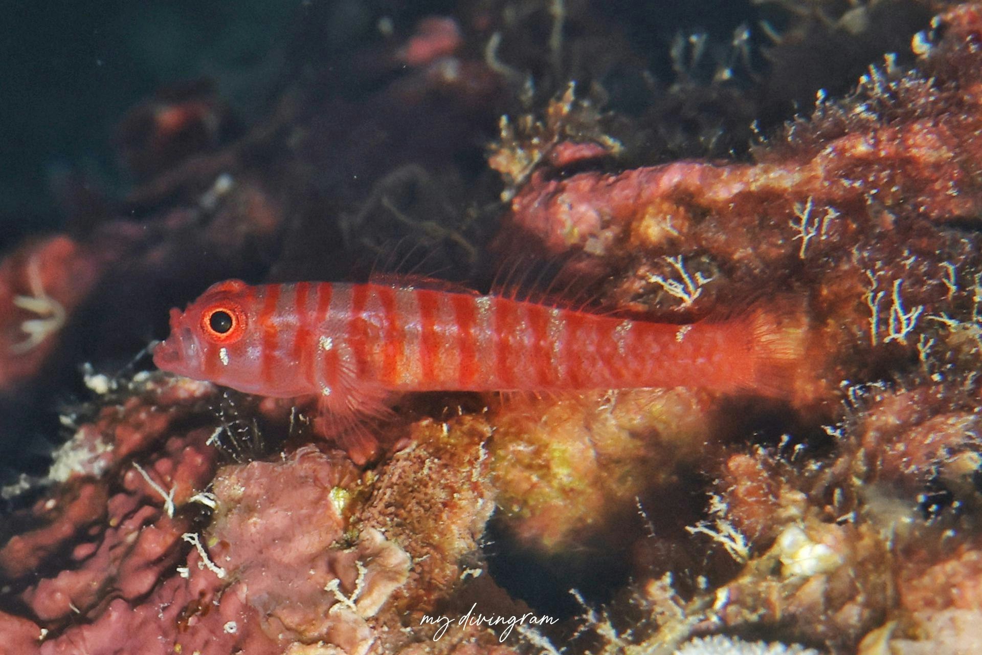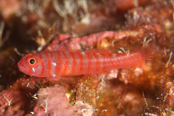 正確には縞の本数は8本で、シマイソハゼと同じなのですが、縞模様の中央の色が薄くなっていることで縞の数が多いように見えます。
