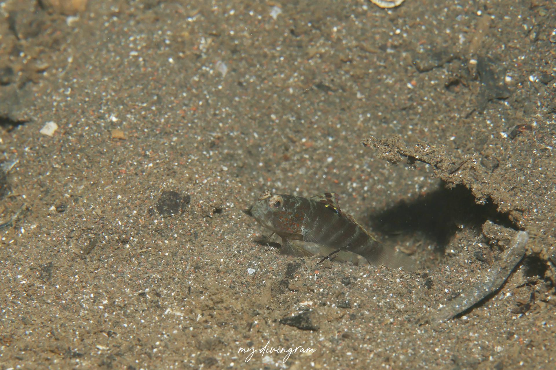 カスリハゼspとは背鰭の模様がくっきりとしていないこと、臀鰭の帯が直線状であることで見分けられます。