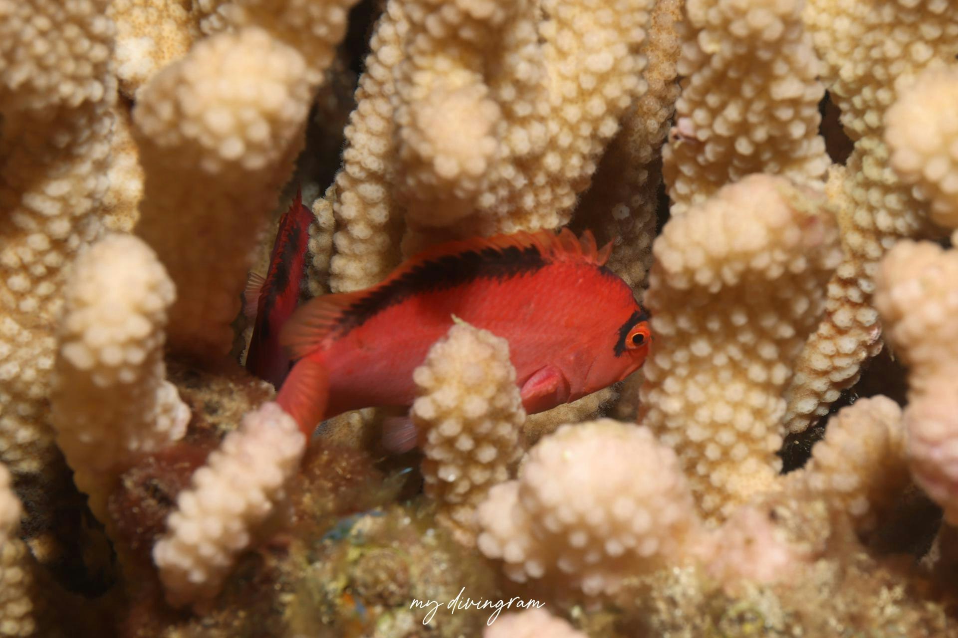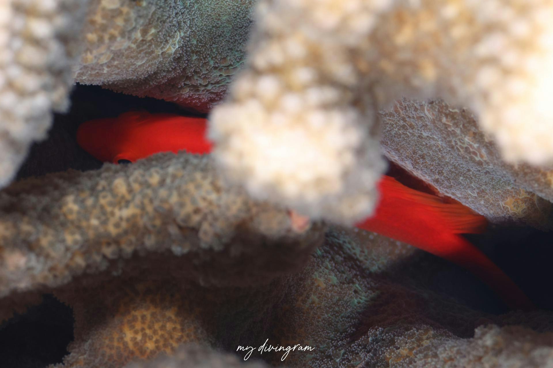 無限にベニゴンベがいる中で全身真っ赤な個体、名付けてベニゴンベモドキを見つけました。