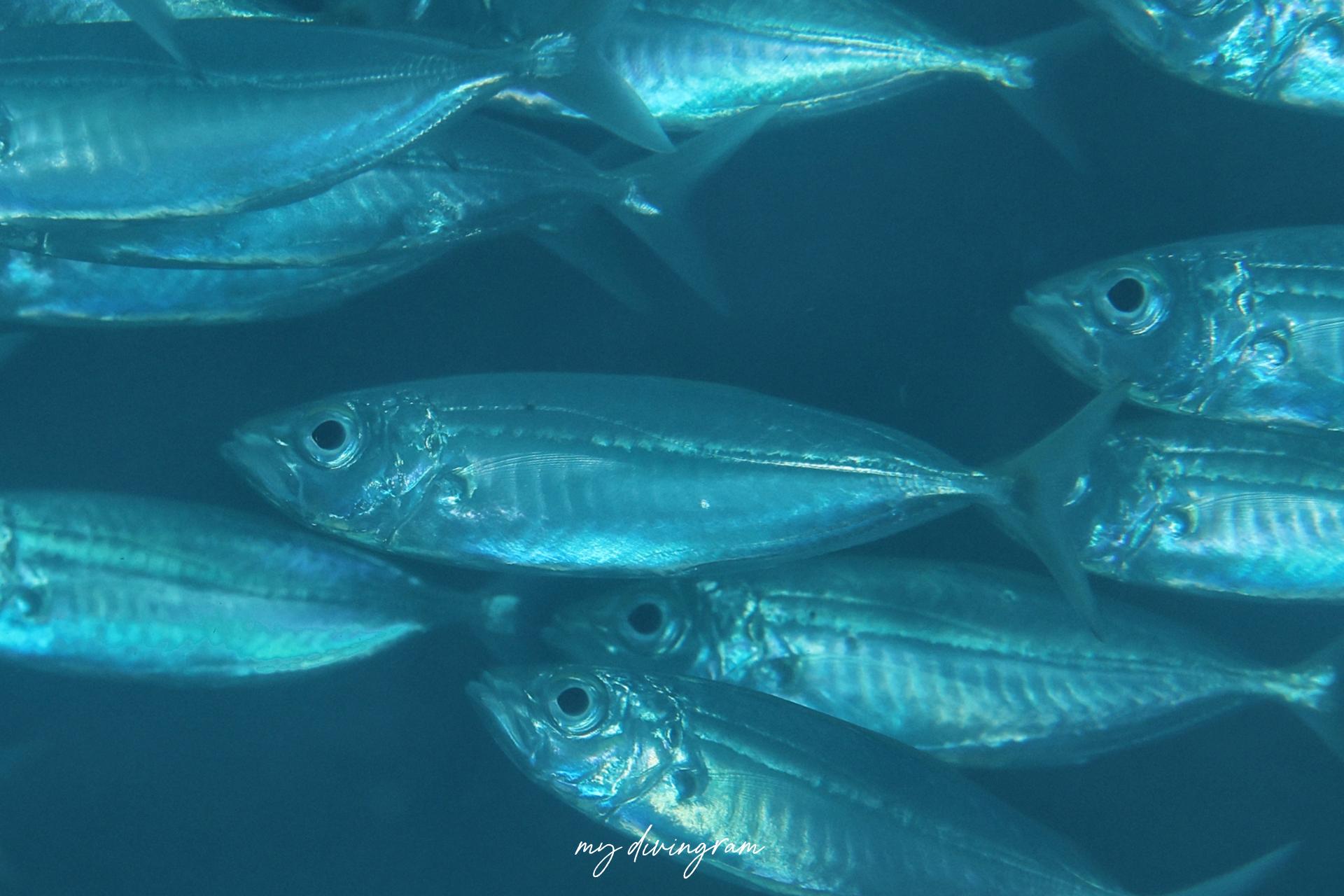 マアジと似ていますが、眼が大きいことや側線のカーブが緩やかなことで見分けられます。