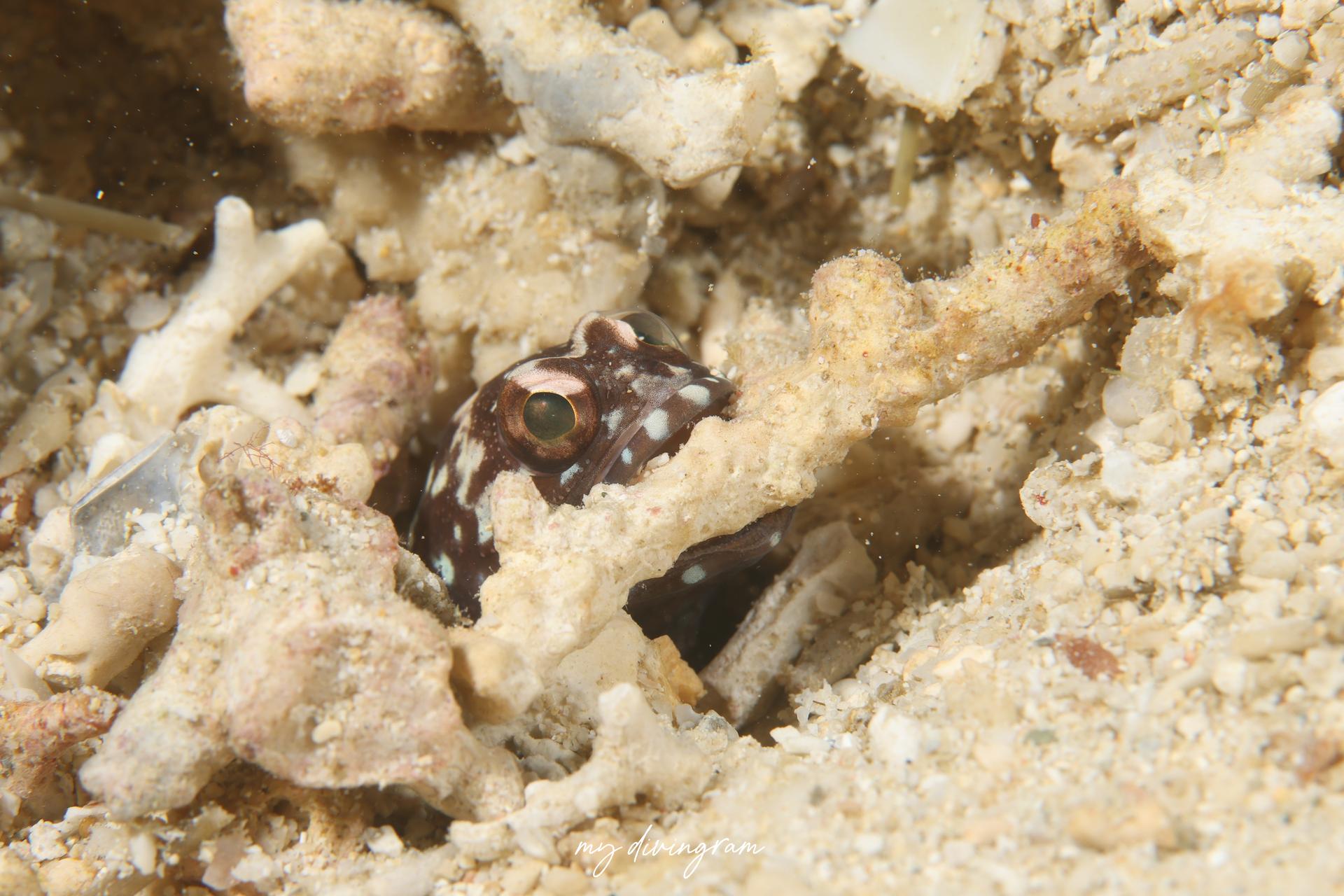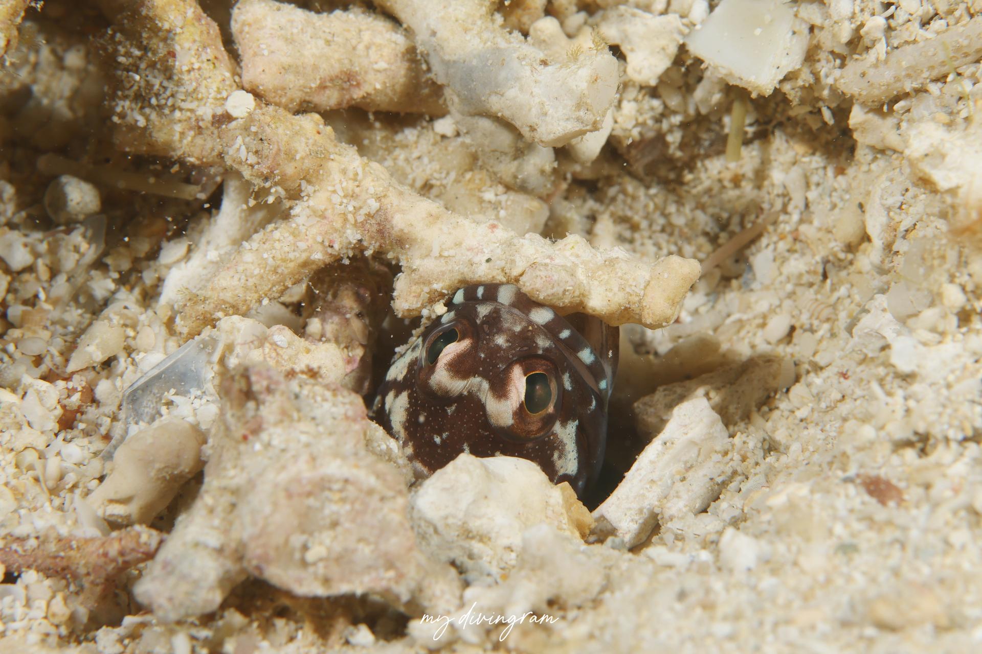 沖縄のダイビングで見られるジョーフィッシュと言ったら本種ホシカゲアゴアマダイとメガネアゴアマダイが有名でしょう!