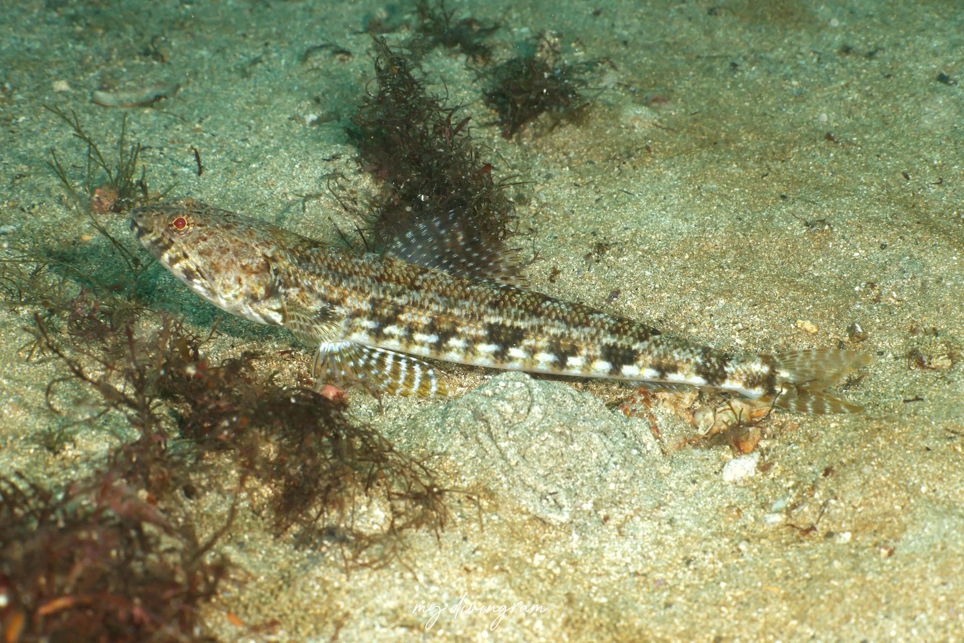 普通、アカエソは背鰭14軟条な一方、ミナミアカエソは12軟条のようです。また、アカエソの皮弁はヘラ状で、ミナミアカエソは棒状です。