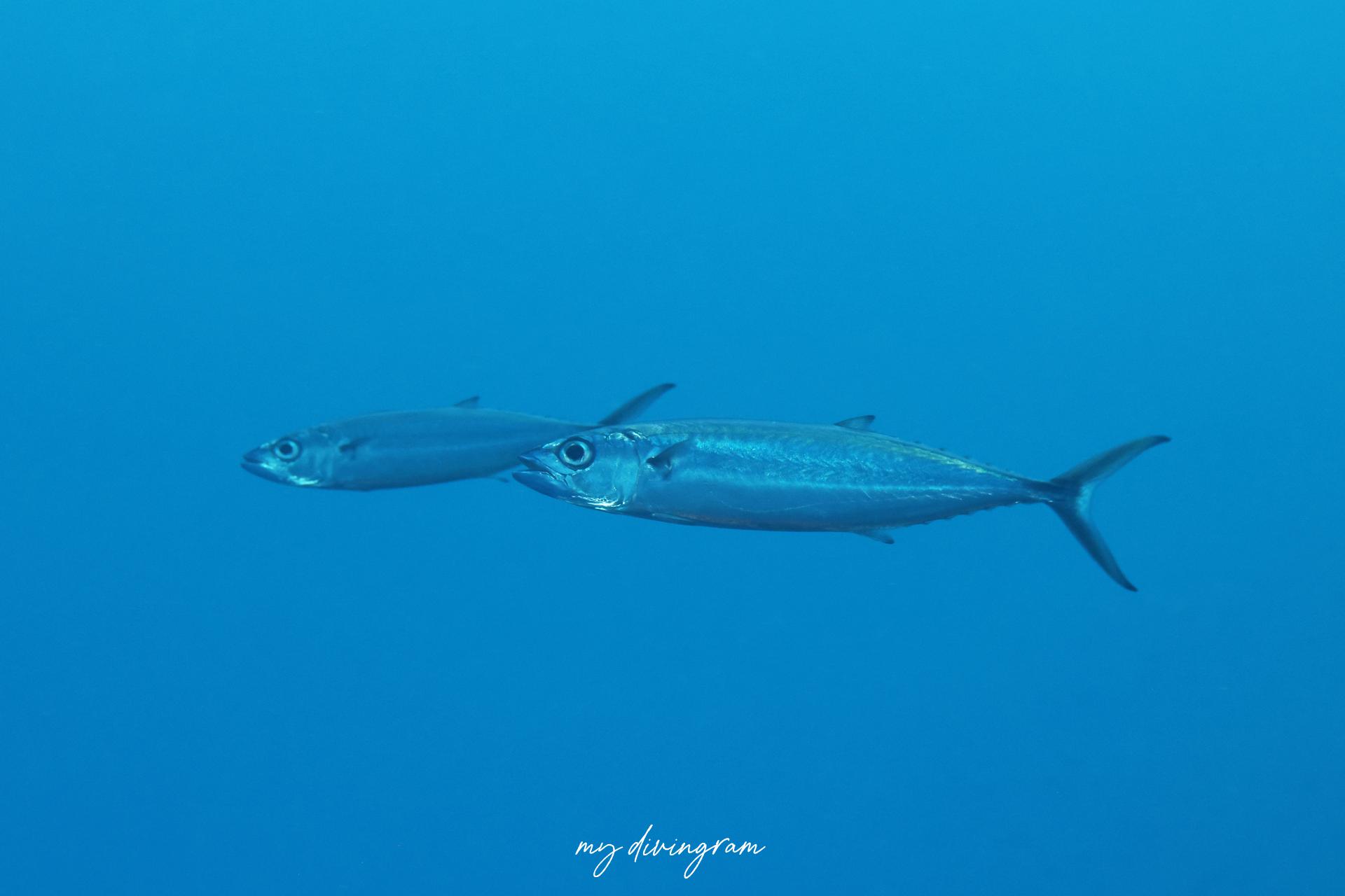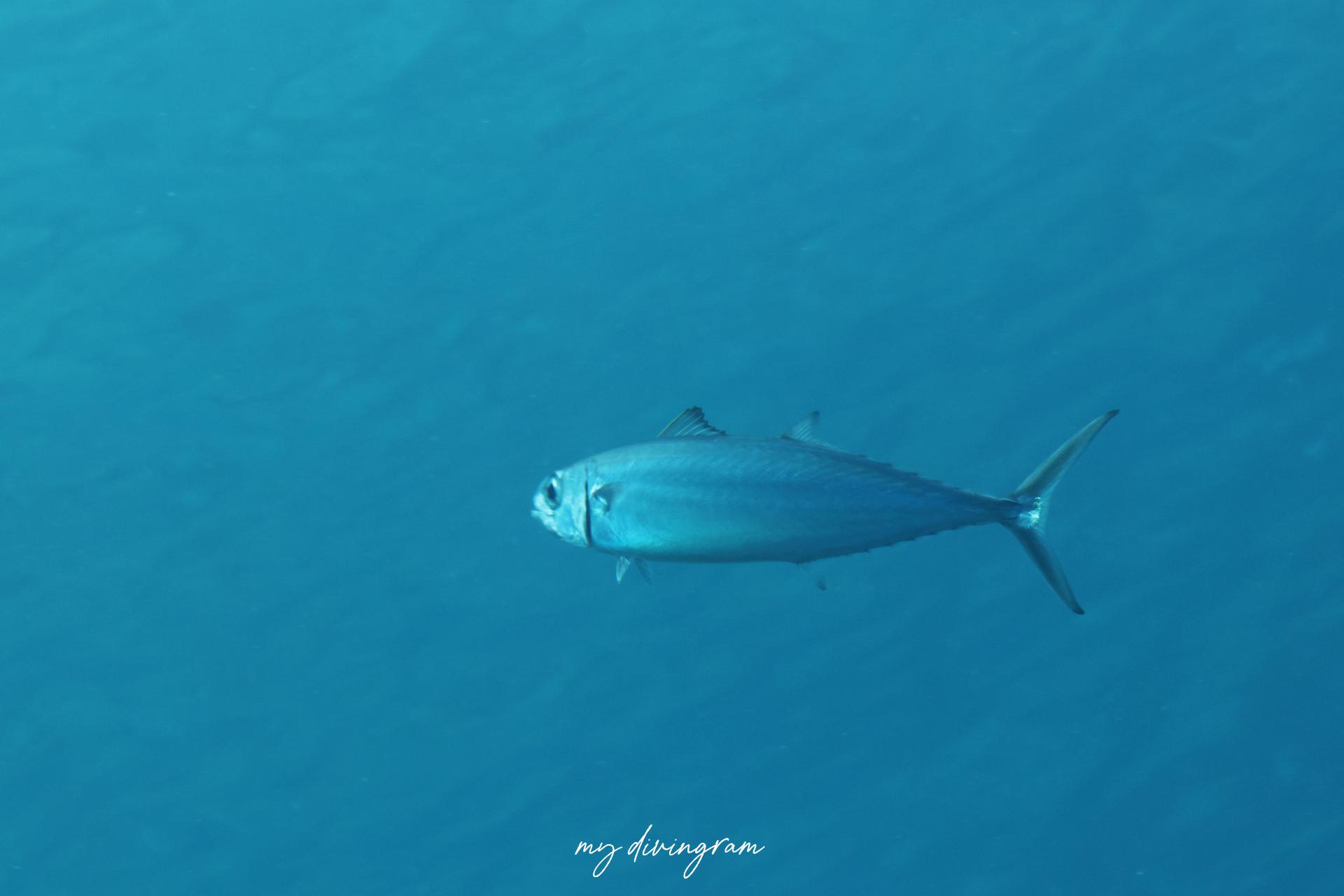 青物系の同定は苦手なのですが、これはなぜか水中でニジョウサバだ!とピンときました。もちろん側線など見えているはずはなく顔つきで判断しただけでしたが…笑