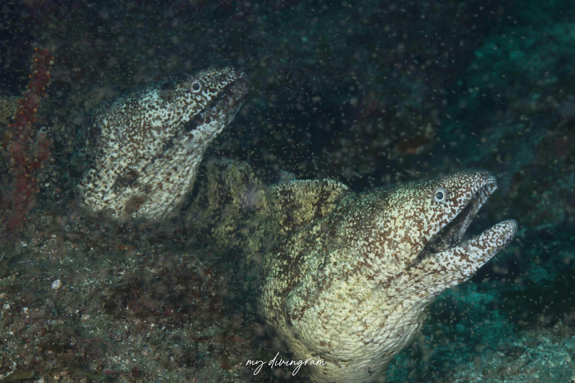坂田の海にはウツボがたくさんいてそこら中でペアリングしていました。