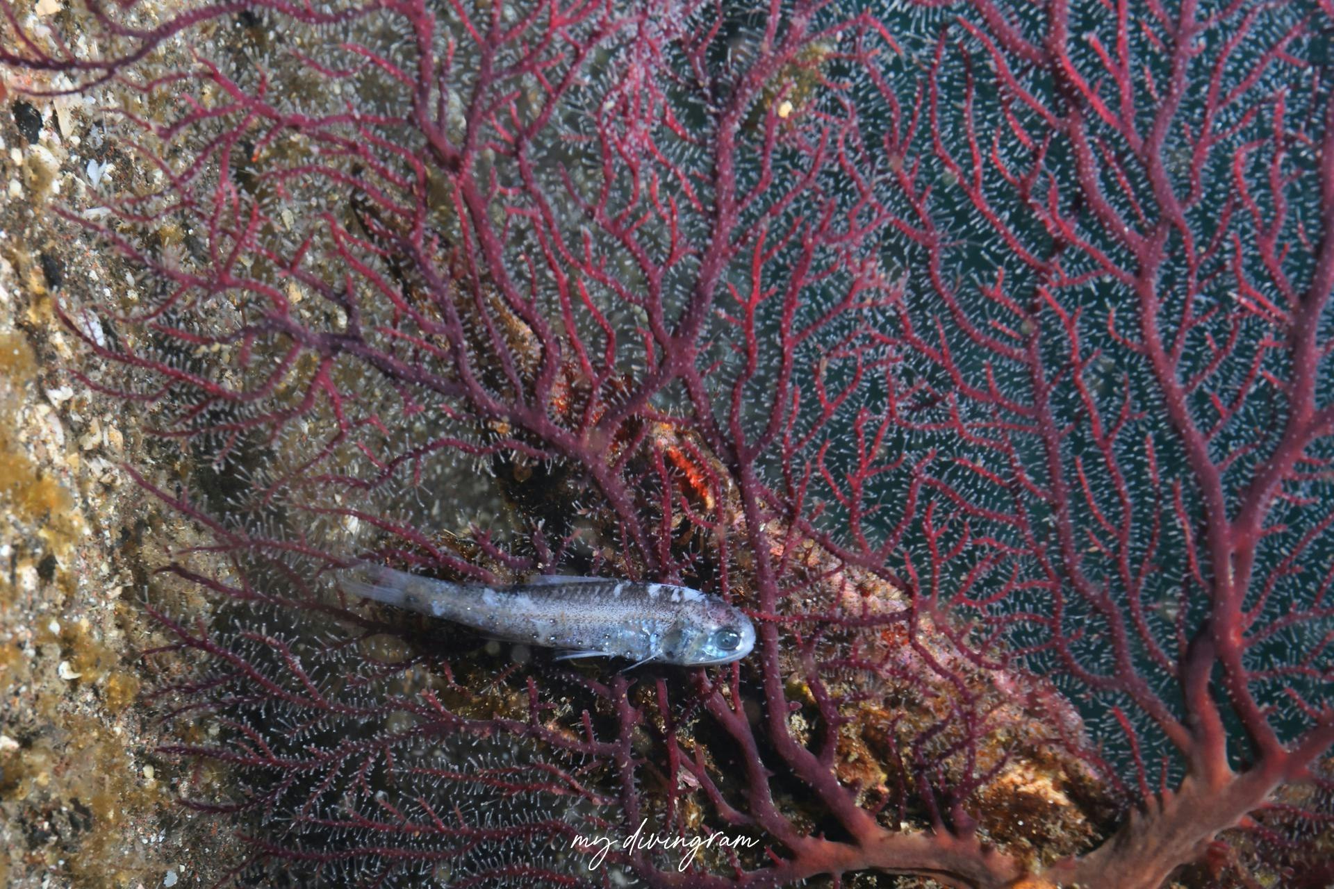 ヒロハダカの生態写真 () を撮っていたら、ちょうど同時期に爆発していたホシフグに盗まれました。