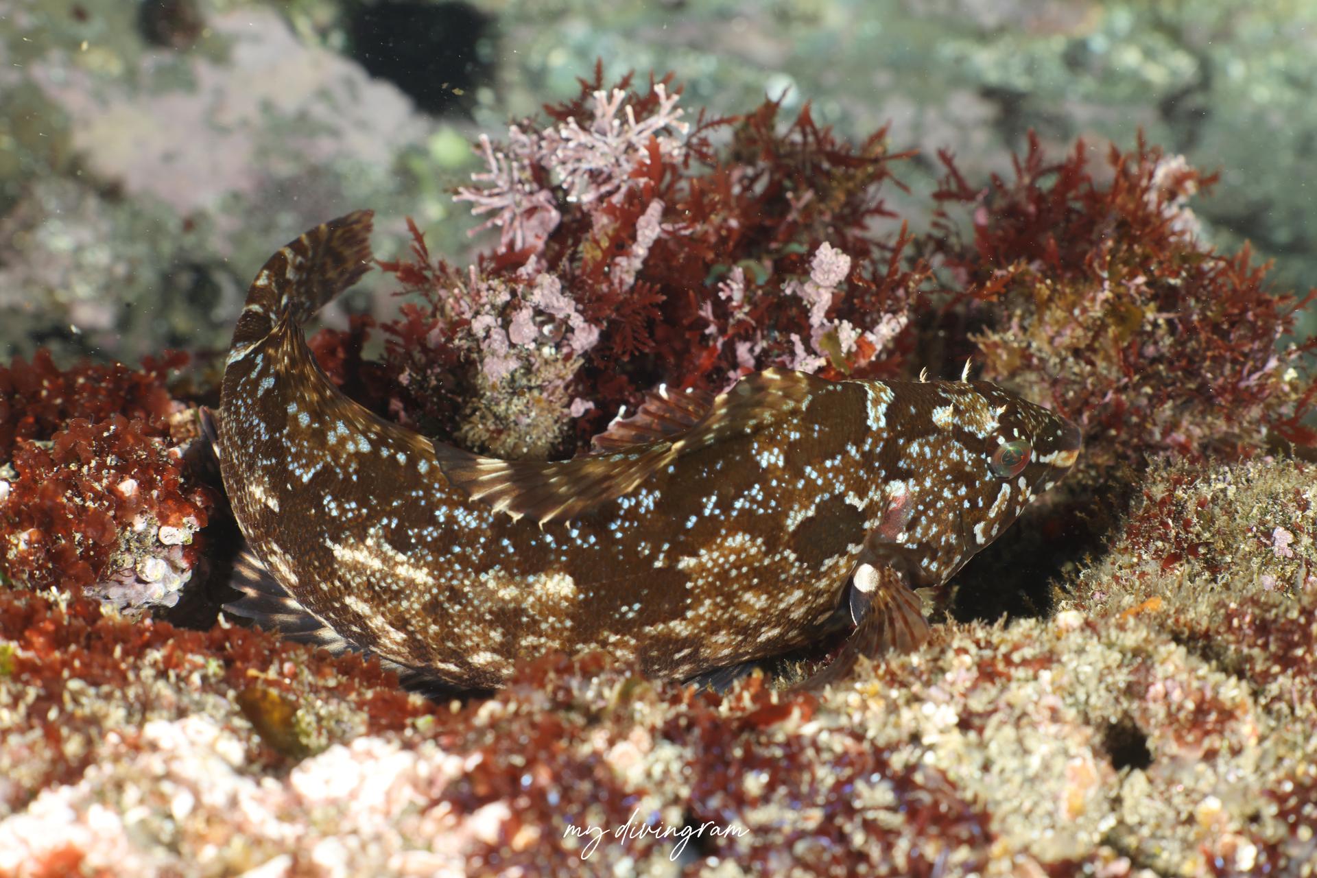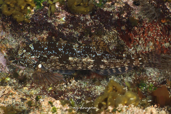 他のアイナメ属の種とよく似ていますが、尾鰭の端は丸いこと、側線が1本のみなこと、胸鰭軟条数が16〜18と少ないことなどで見分けられます。