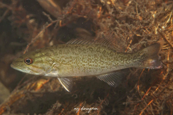 オオクチバスに似ていますが口が小さく、主上顎骨後端は眼の後縁を超えないことが特徴です。