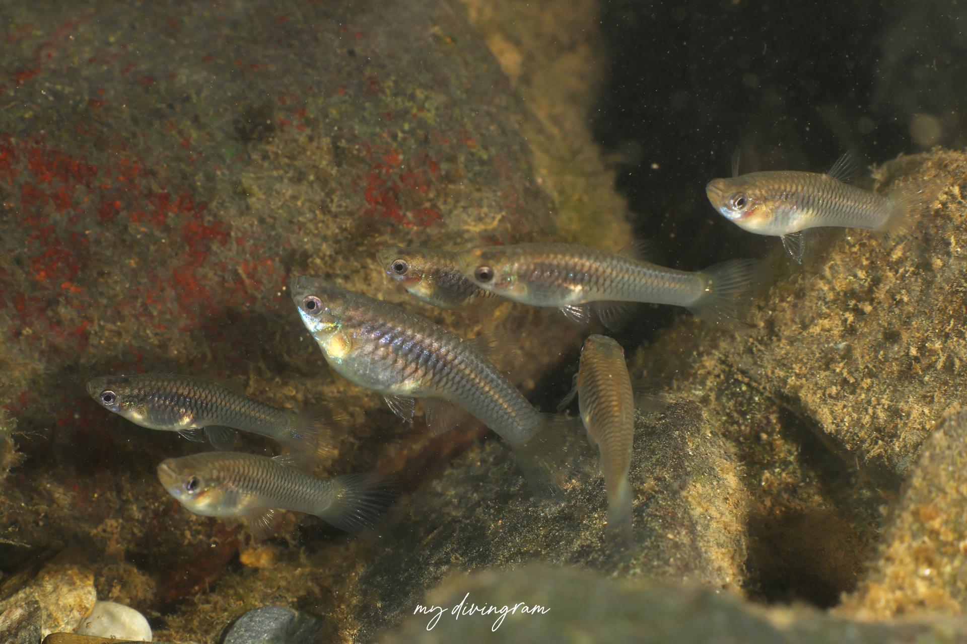 メスはカダヤシによく似ていますが、背鰭がほぼ臀鰭と同じ位置にあることで見分けられます。