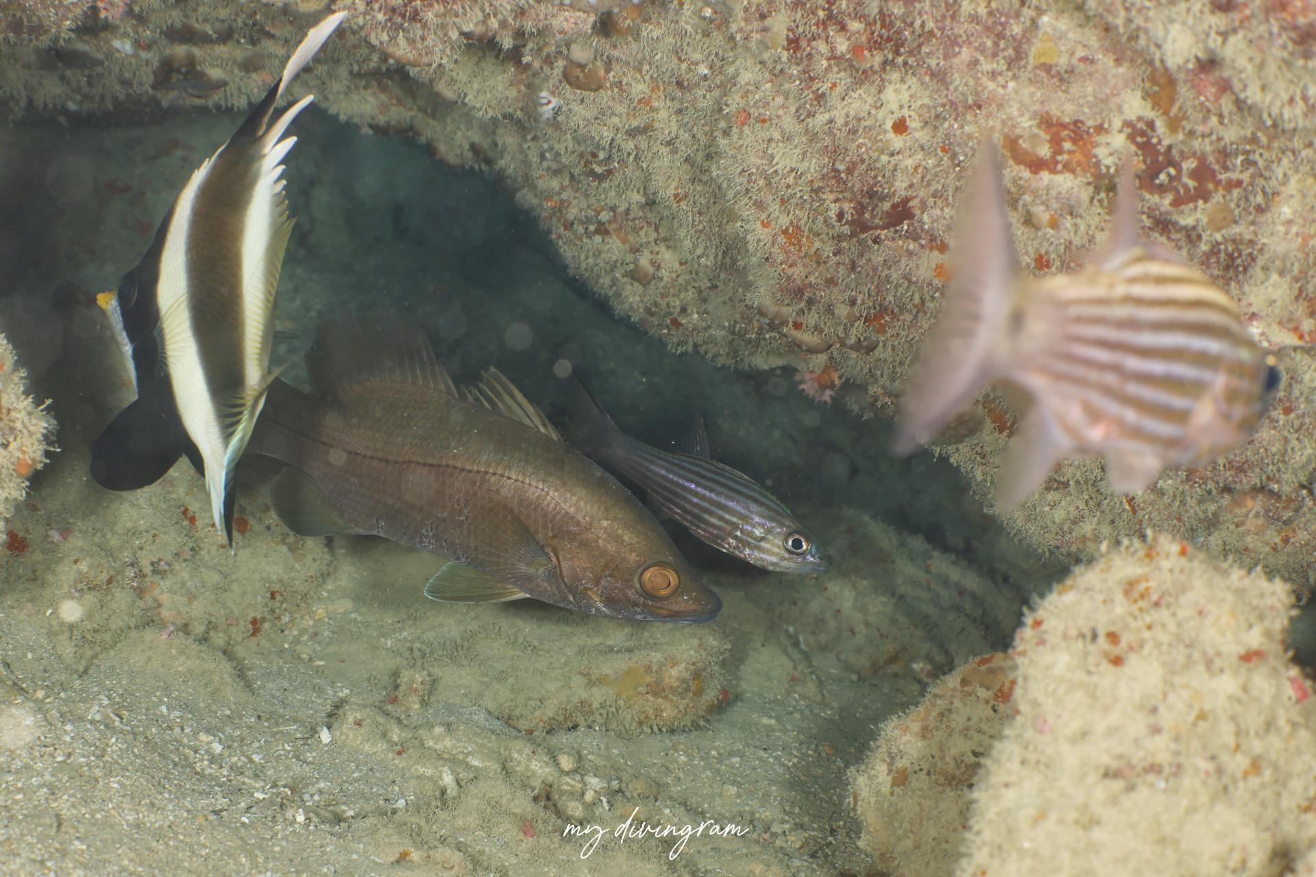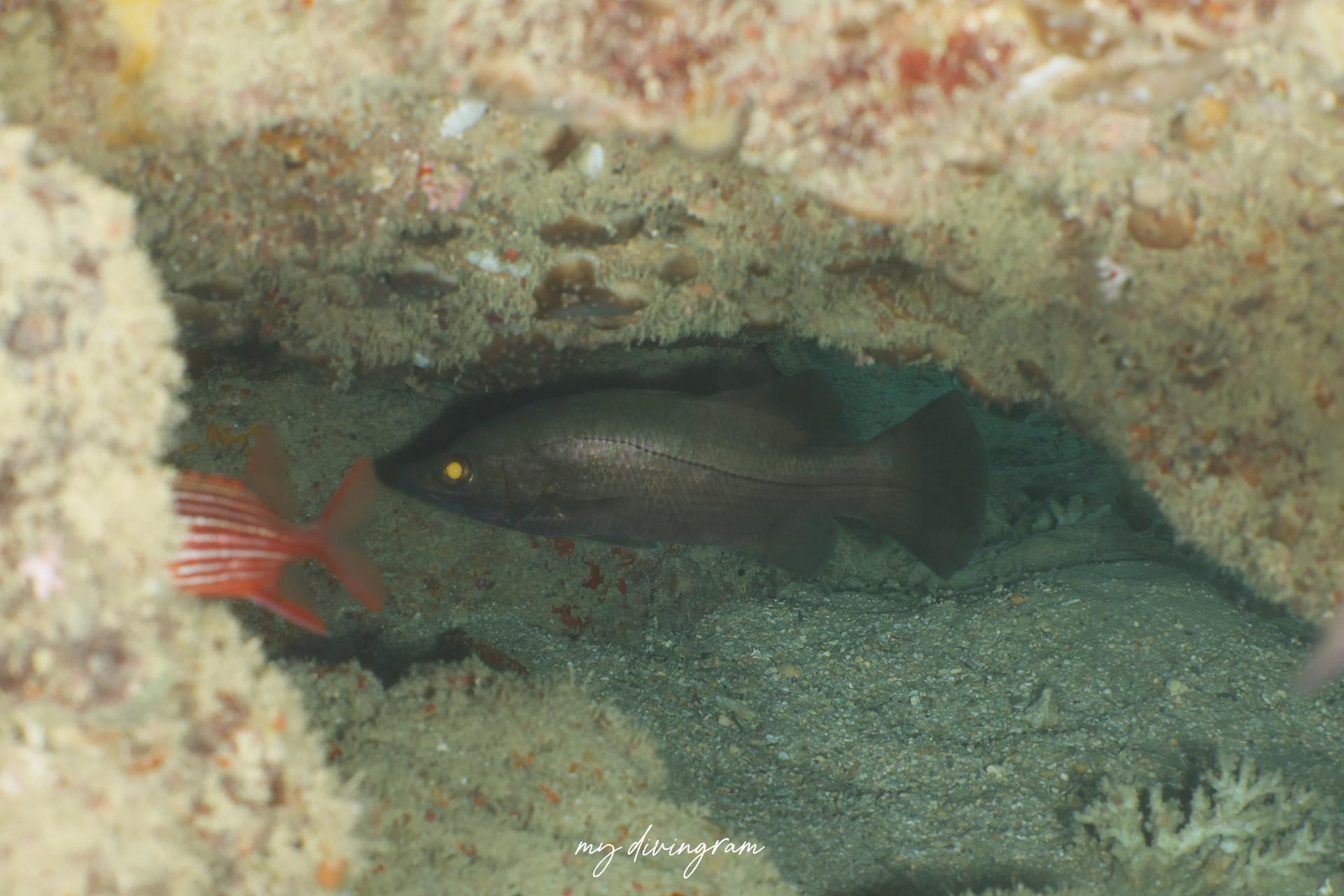 スダレヤライイシモチやエビスはいいとして、ミナミハタタテダイがマジで邪魔です。なのでアカメモドキに圧をかけないようにミナミハタタテダイを穴から外に出すという超高等テクニックを身に着けるのに時間がかかりました笑