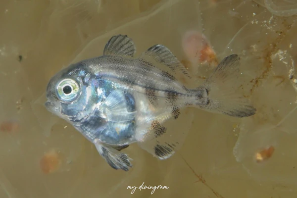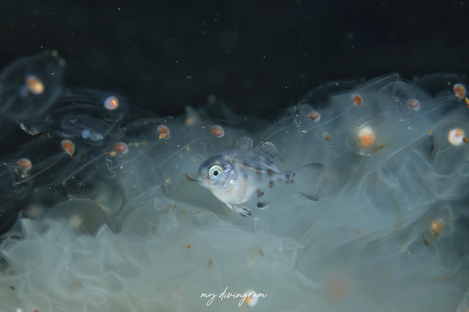 なかなか見る機会のないエボシダイ科ですが、浮遊系フィーバーの大瀬崎でメダイの群れに混じって見られました。