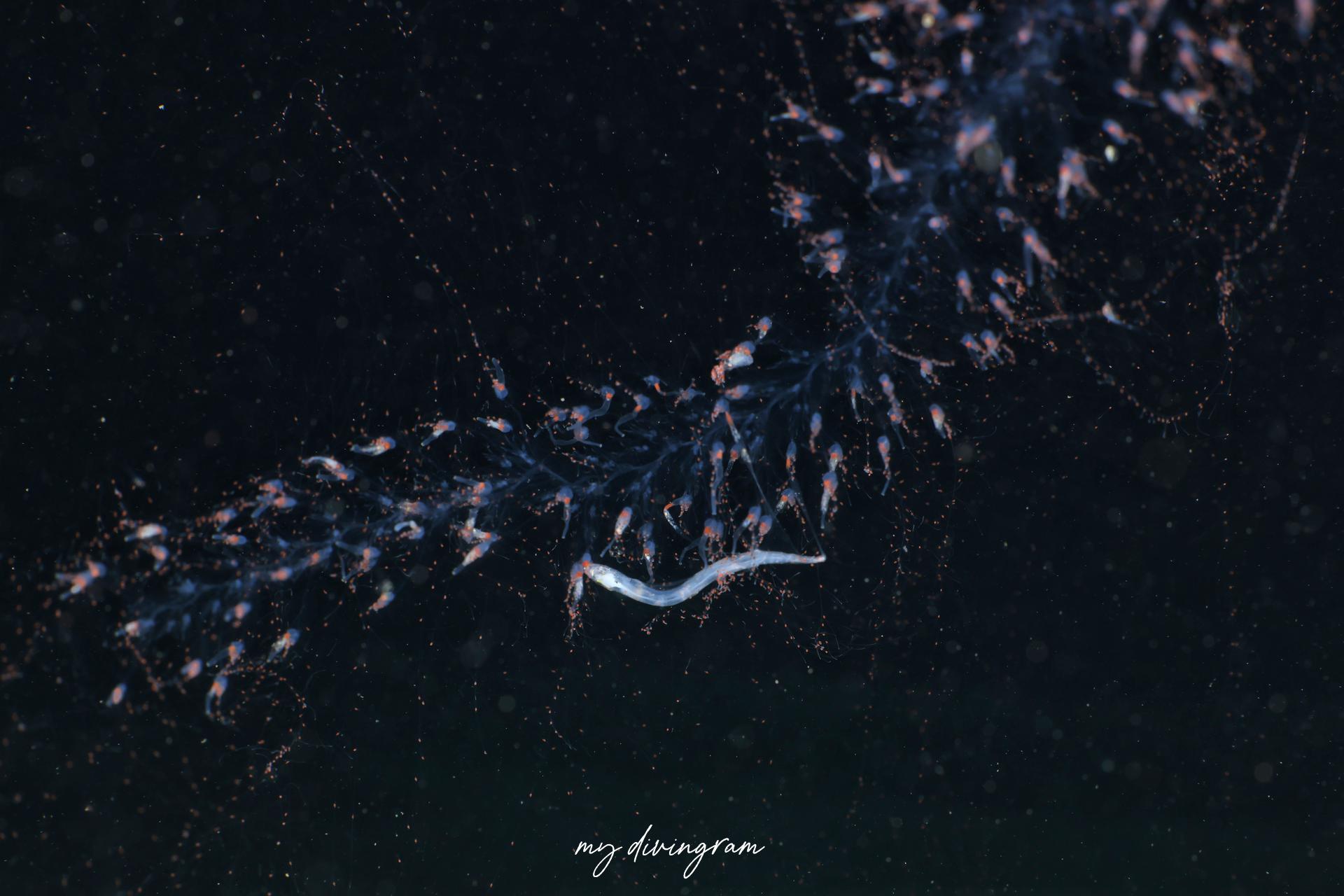 おそらくキビナゴの稚魚がクラゲに襲われてました。
