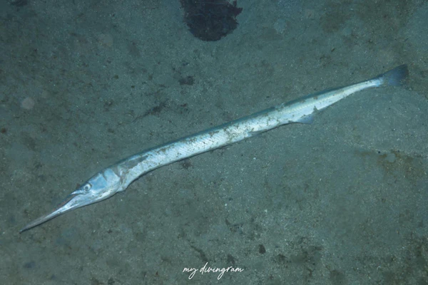 鰓蓋に暗色横帯があるのが紛らわしいのですが、ダツにもオキザヨリほどは太く明瞭ではないものの暗色横帯があるらしいです!