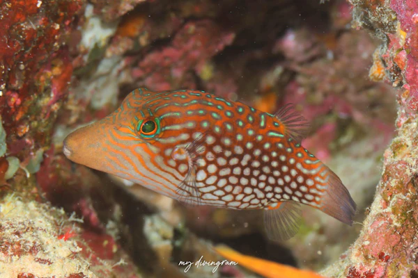 またゴマフキンチャクフグにもよく似ていますが、腹部の斑紋は体側の斑紋より大きく、尾鰭に斑紋がないことで見分けられます。