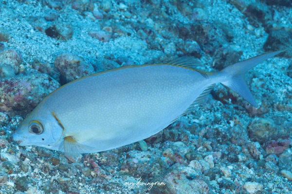 幼魚~若魚の場合、ハナアイゴは体側の模様が黄色いストライプな一方で、セダカは黄色い斑模様なことで見分けられるそうです!