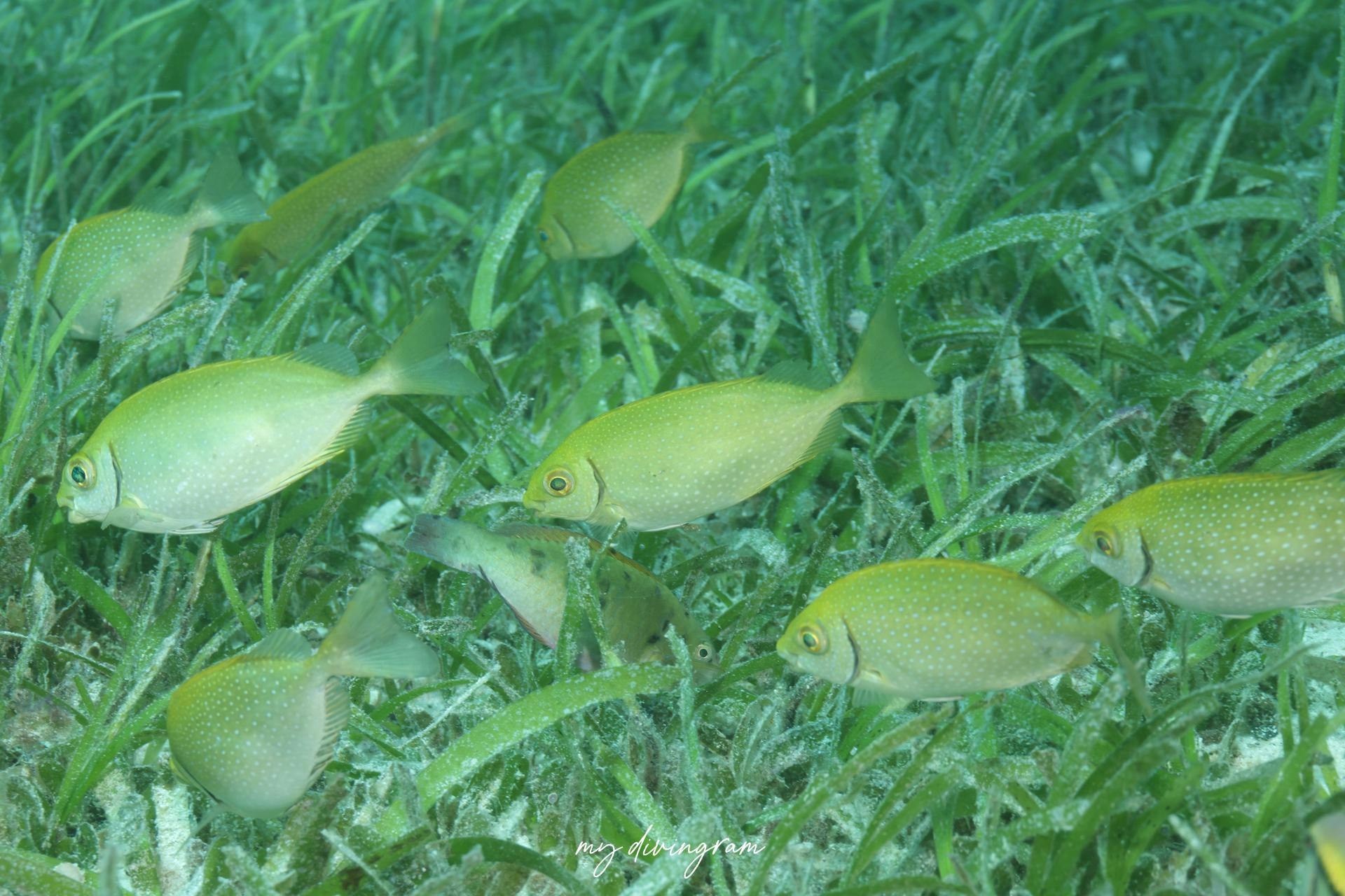 白色点が小さく数が多いこのタイプは従来シモフリアイゴと呼ばれ別種とされてきましたが、遺伝的には同種でただの地域変異になるようです。