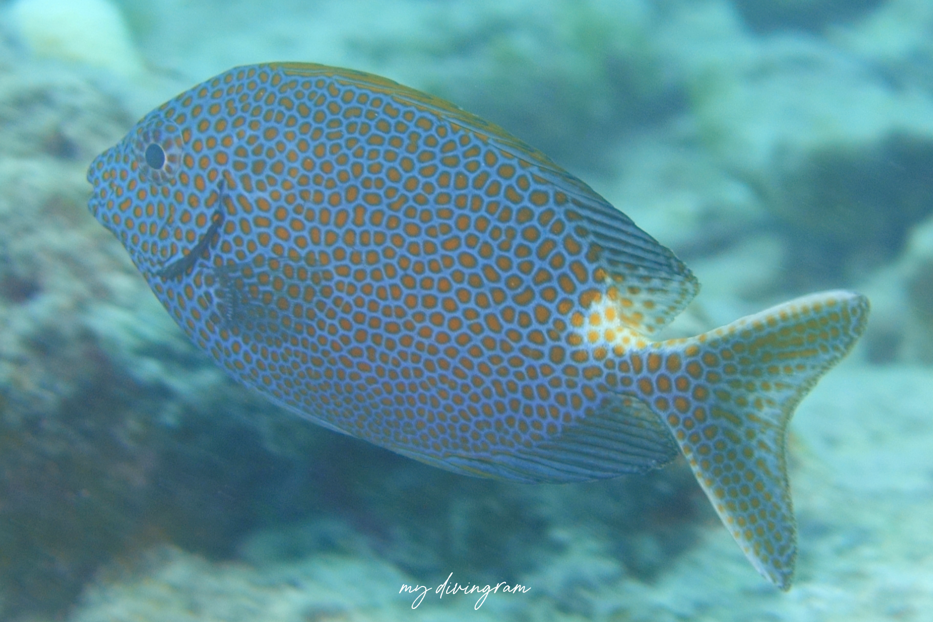 背鰭の終わりに白い斑があったのでゴマアイゴかと思いましたが斑の中に黄斑があるのでブチアイゴが正解のようです。
