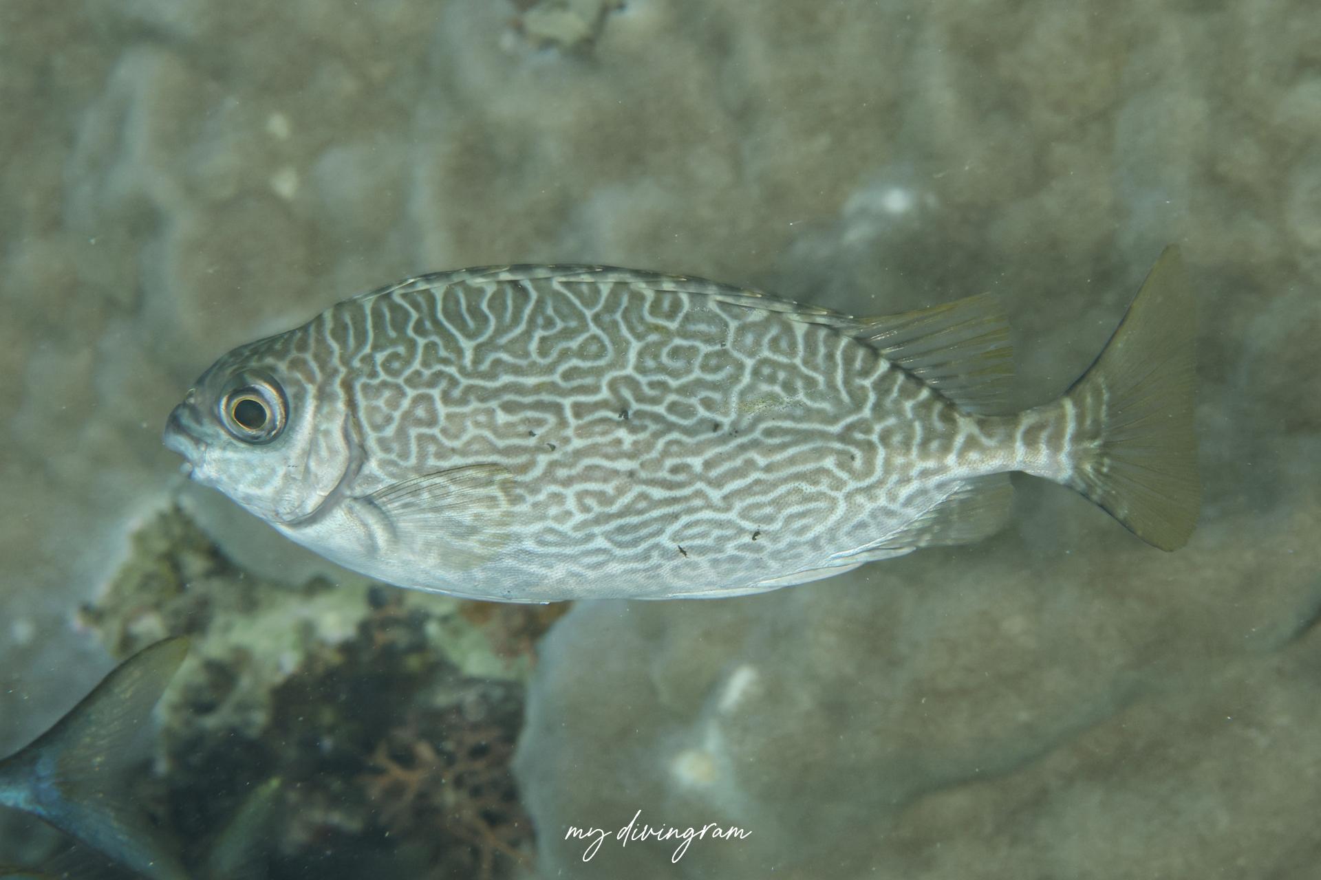 魚類写真資料データベースを見比べているとなんとなくアミアイゴな気がしてきたのでアミアイゴということにしました!