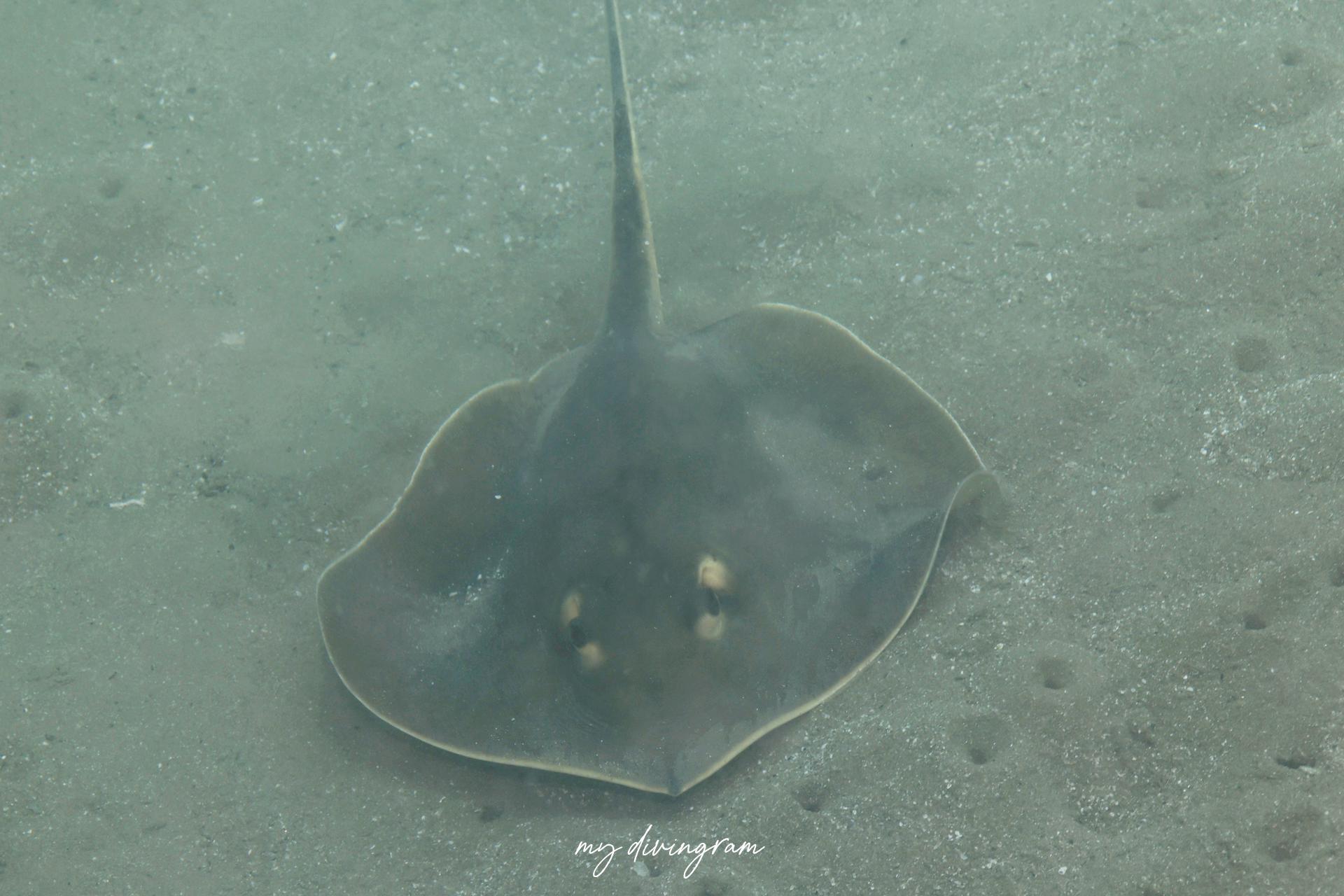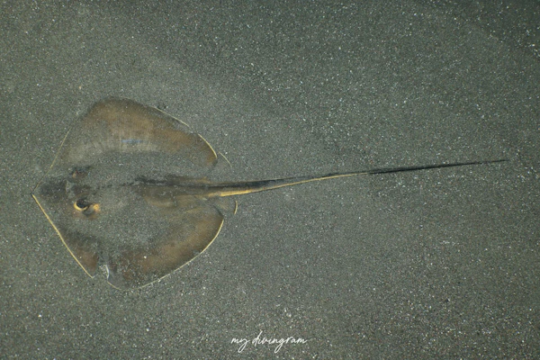 尾の裏側にある皮褶が黒く、縁が白いこともアリアケアカエイの特徴のようです。(※上写真はアカエイ)