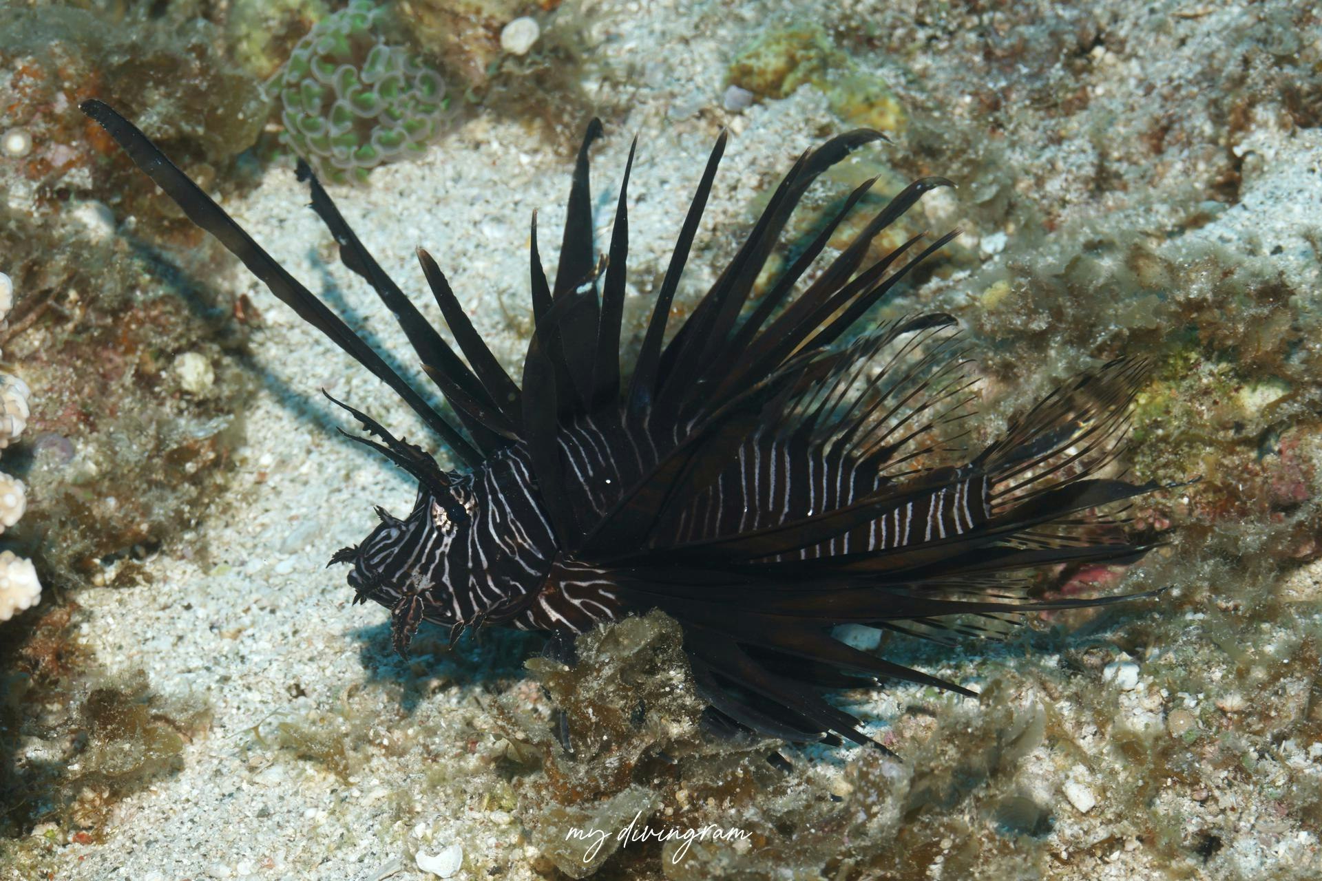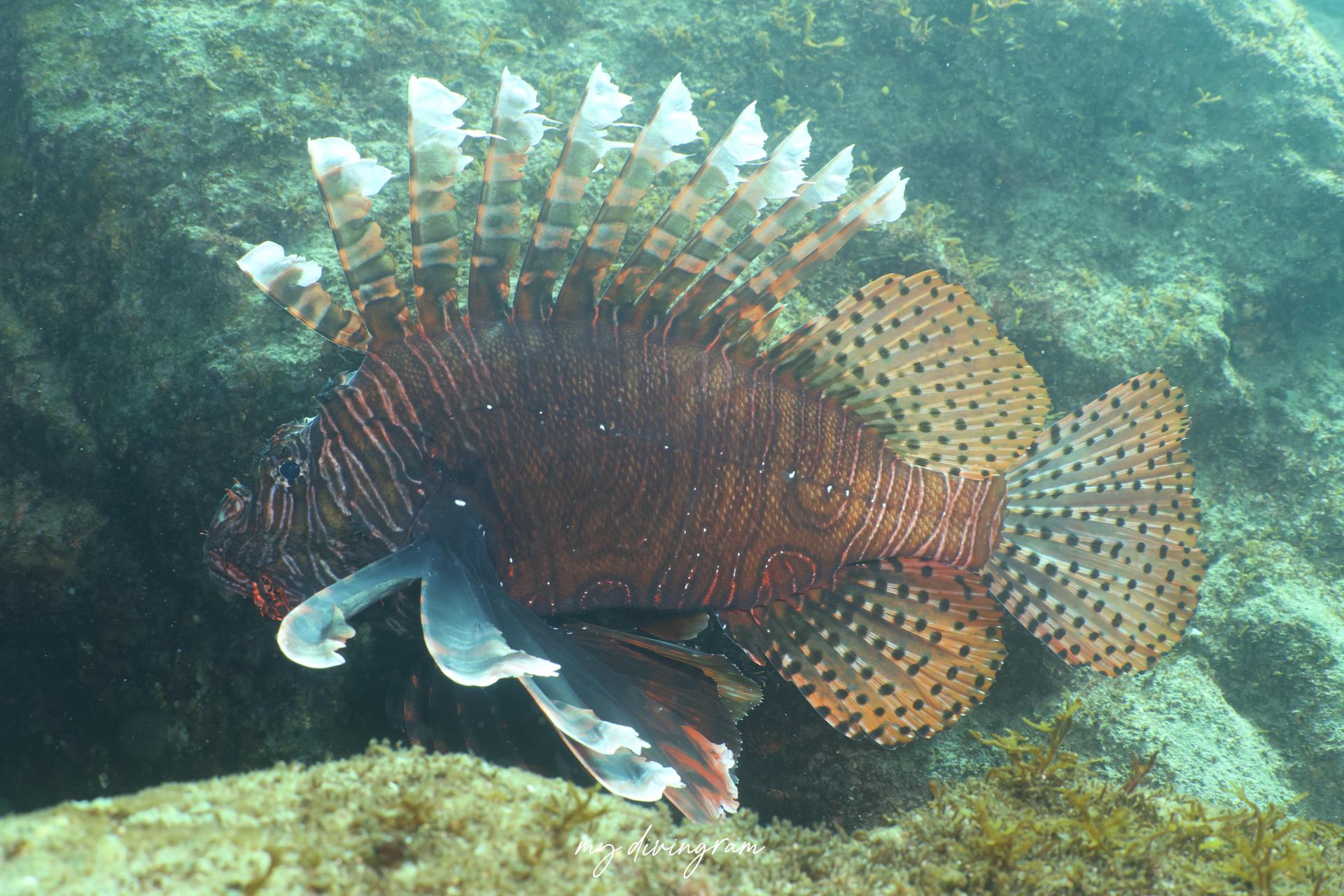 どうやら幼魚はミノカサゴもハナミノカサゴも両方、背鰭や尾鰭に斑点がある個体がいるみたいです。