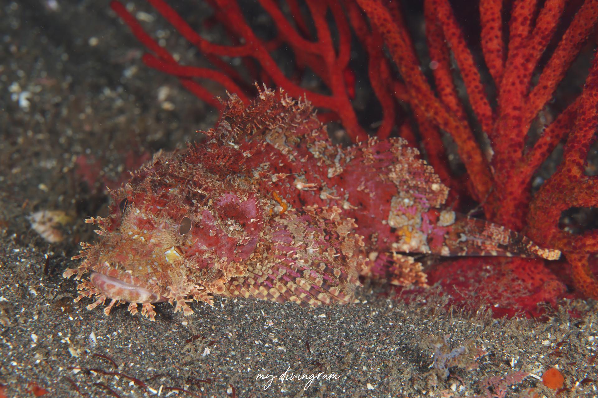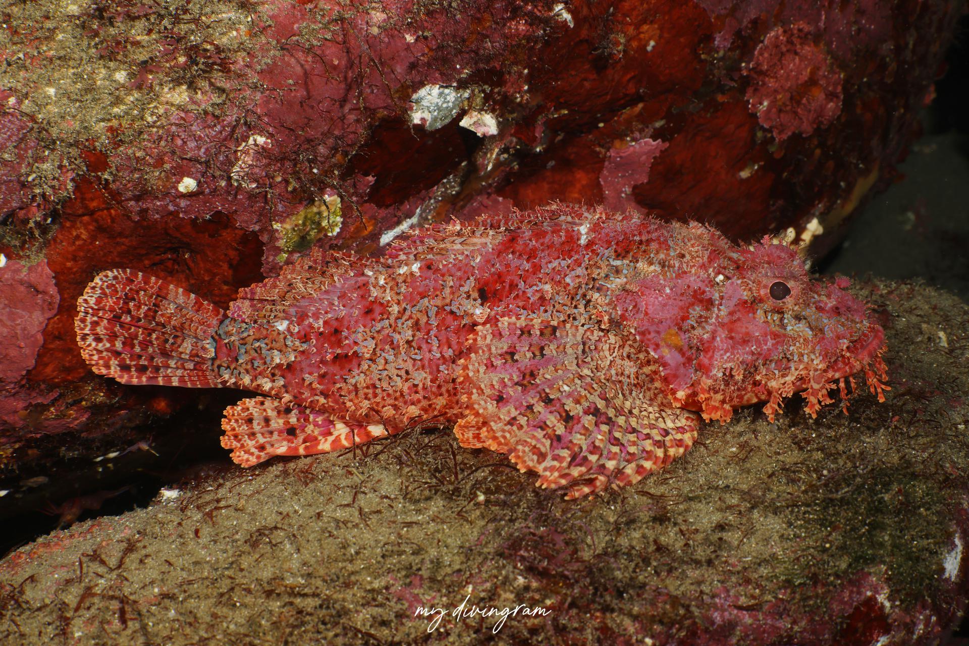 あまりに派手なオニカサゴを見つけたので、めちゃくちゃ期待してたら普通に黒点がありました。オニカサゴでした泣