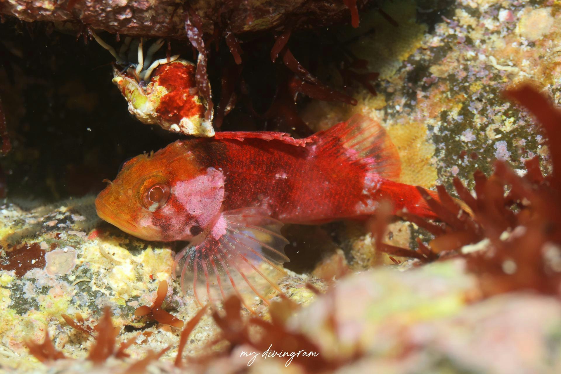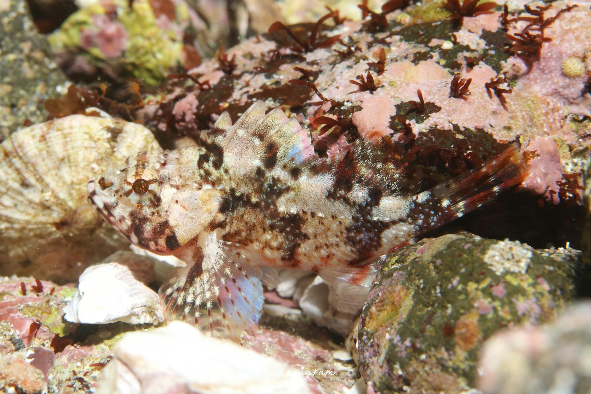 やけに色の綺麗なアカマダラフサカサゴがいました。