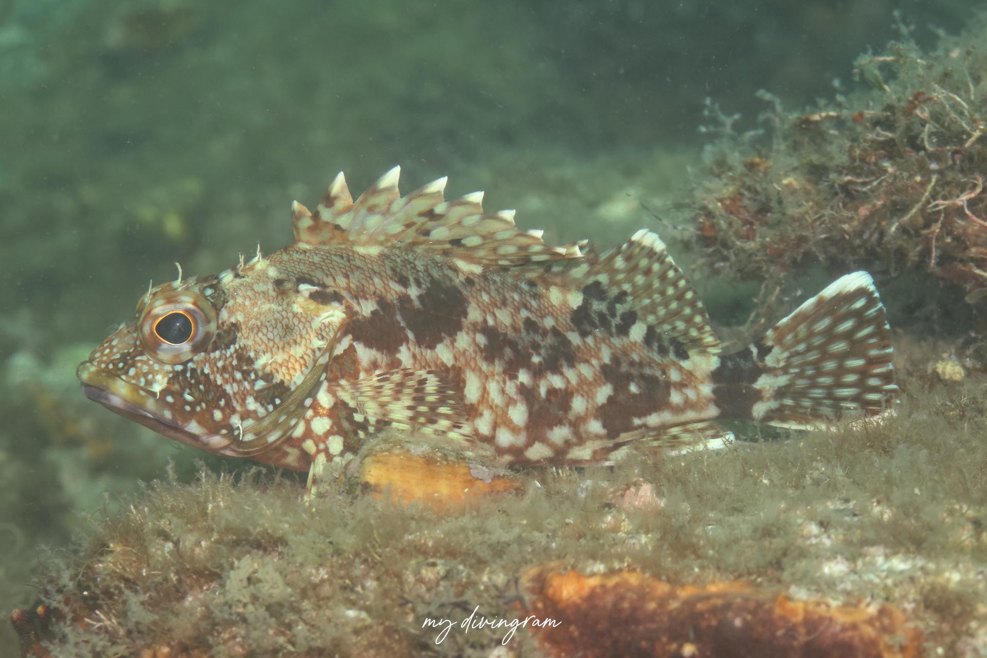 体に白い斑点がたくさんある点でウッカリカサゴと見分けられます。