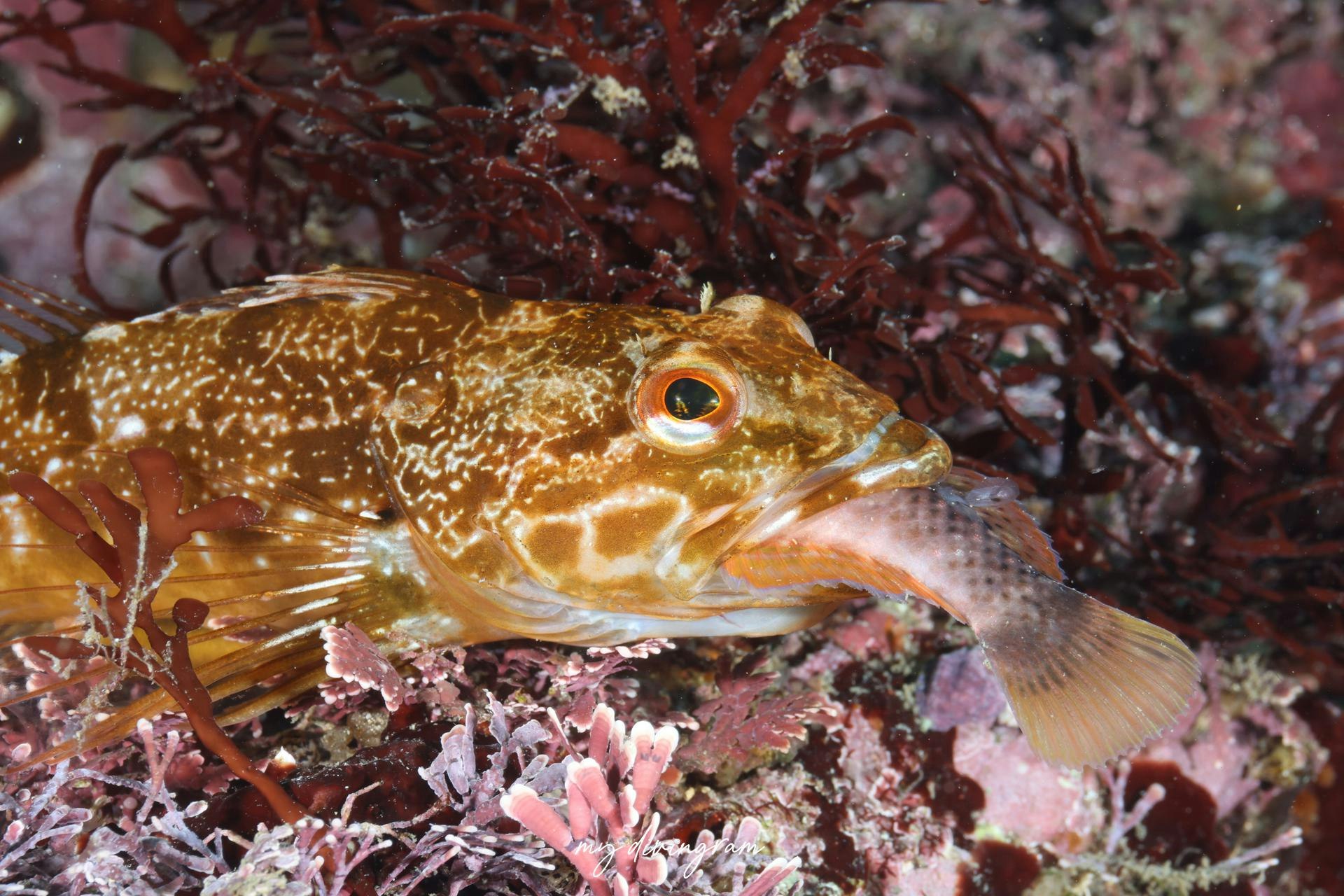 アナハゼがアカササノハベラを捕食していました。