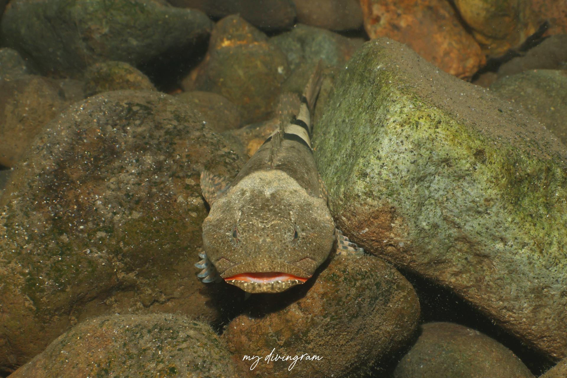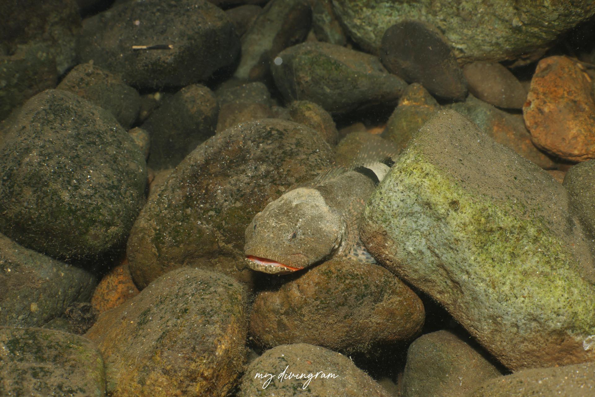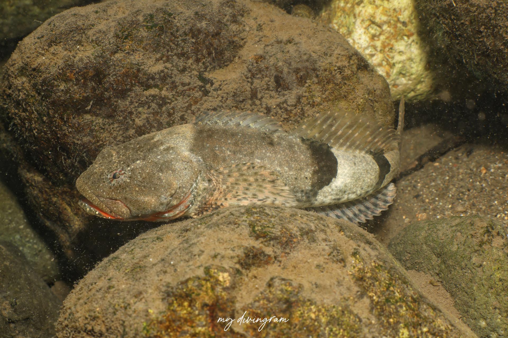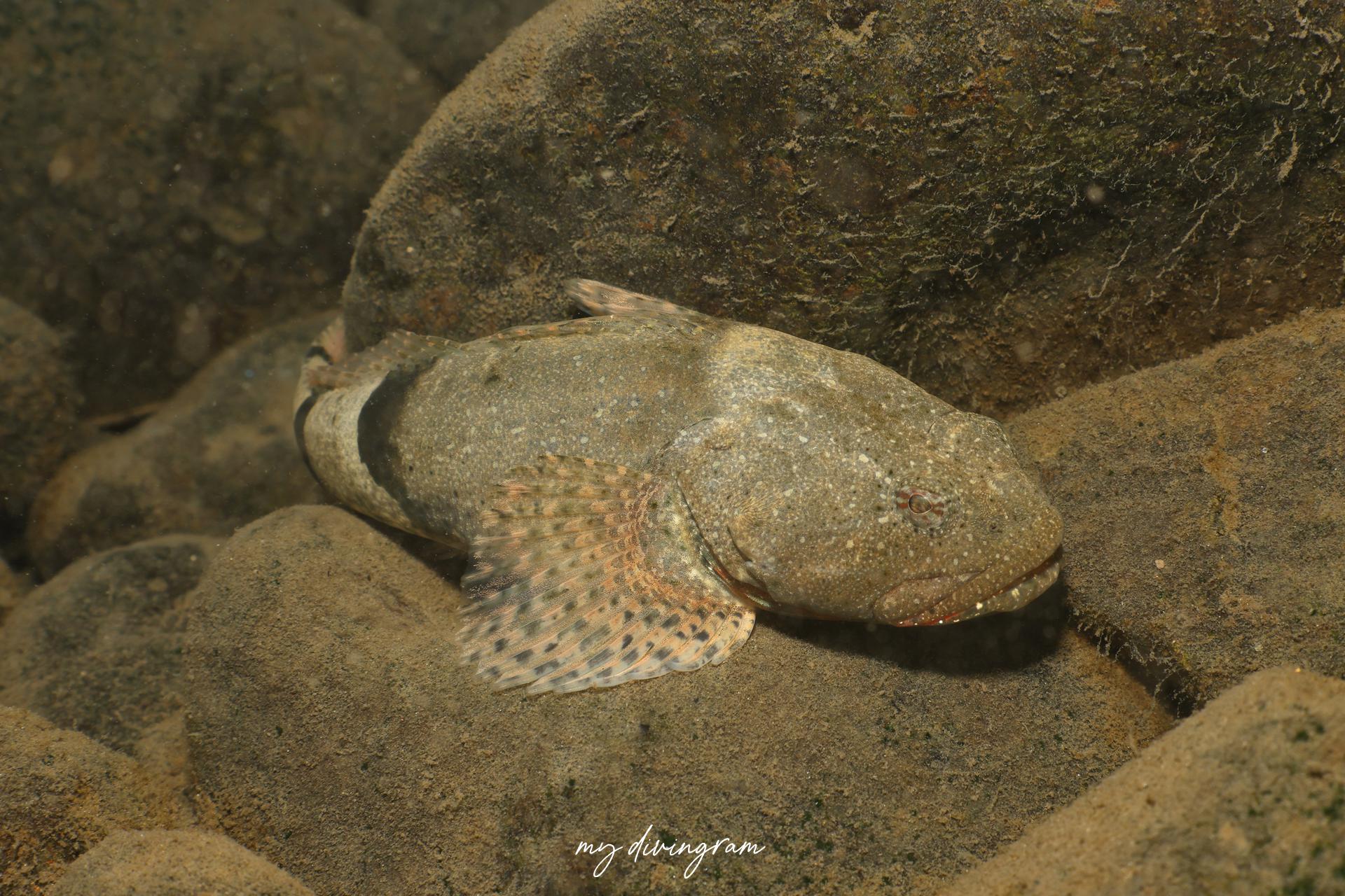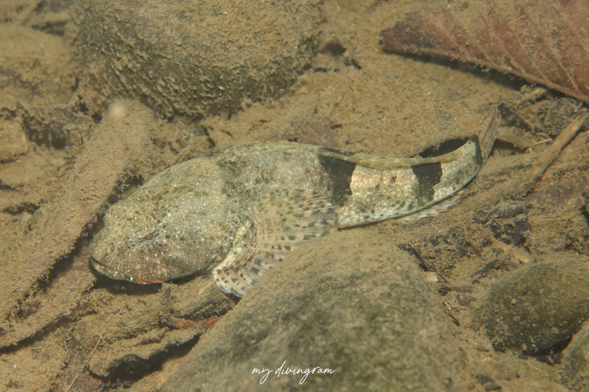 頭部が縦扁することや体側には3~4本の暗色横帯があることが特徴のカジカの仲間です。