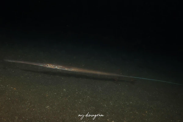 沖合の深場に生息するとされていて、冷水塊と一緒に出現するためダイビングでは滅多に見られないとされていますが、大瀬湾内のナイトで普通に2匹並んで寝ていました笑