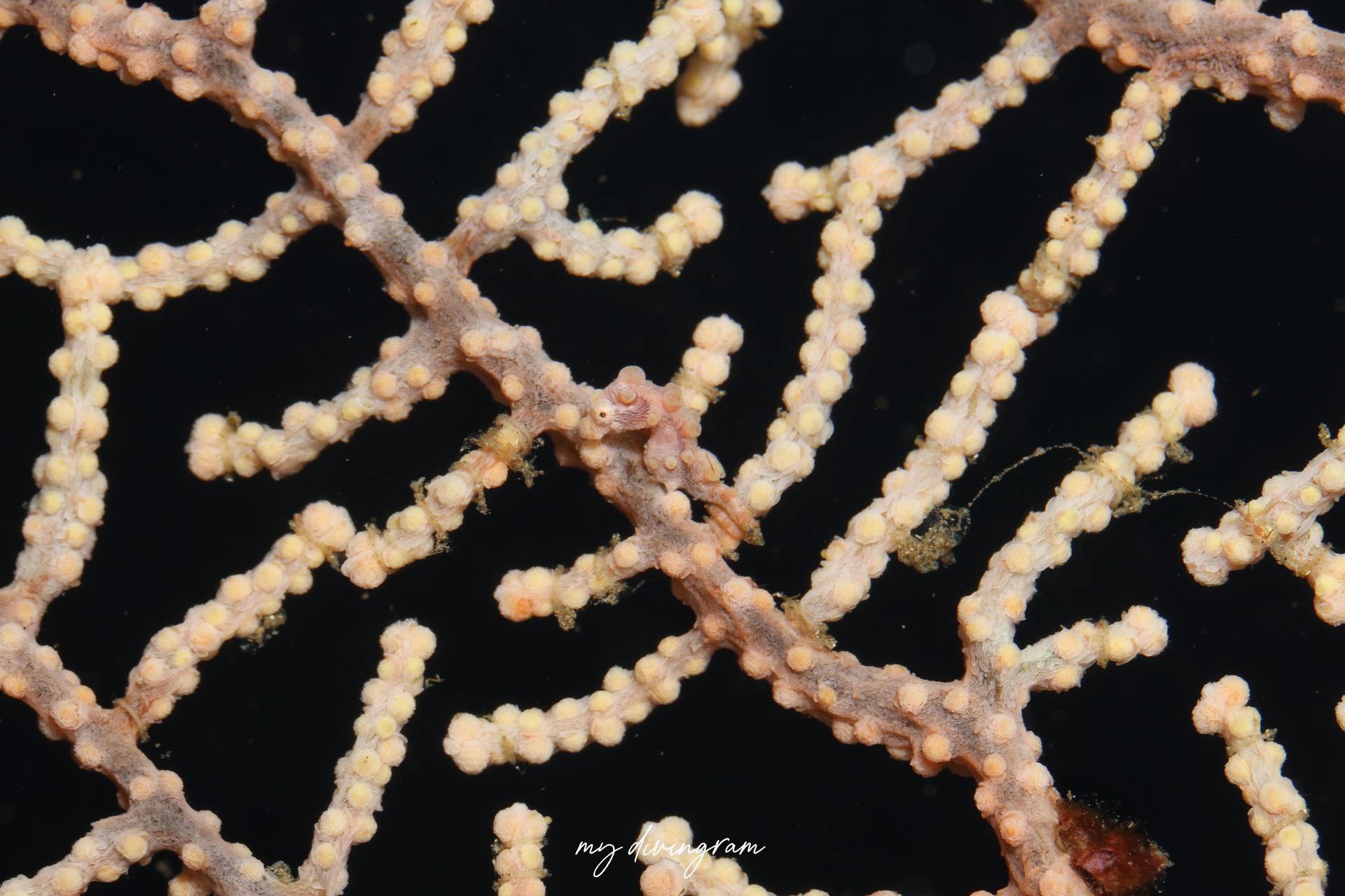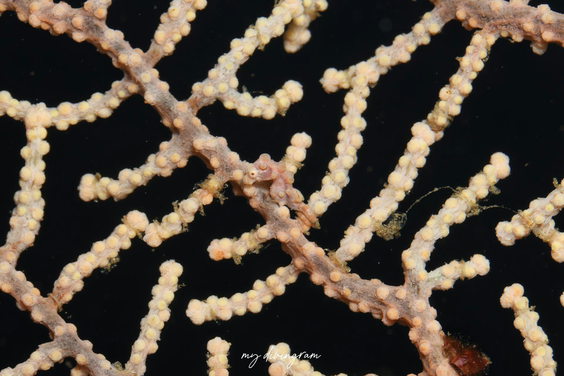 ウミウチワやヤギの枝の間で暮らしている様子が木霊のように見えることから、2025年8月、コダマタツという和名が付きました!