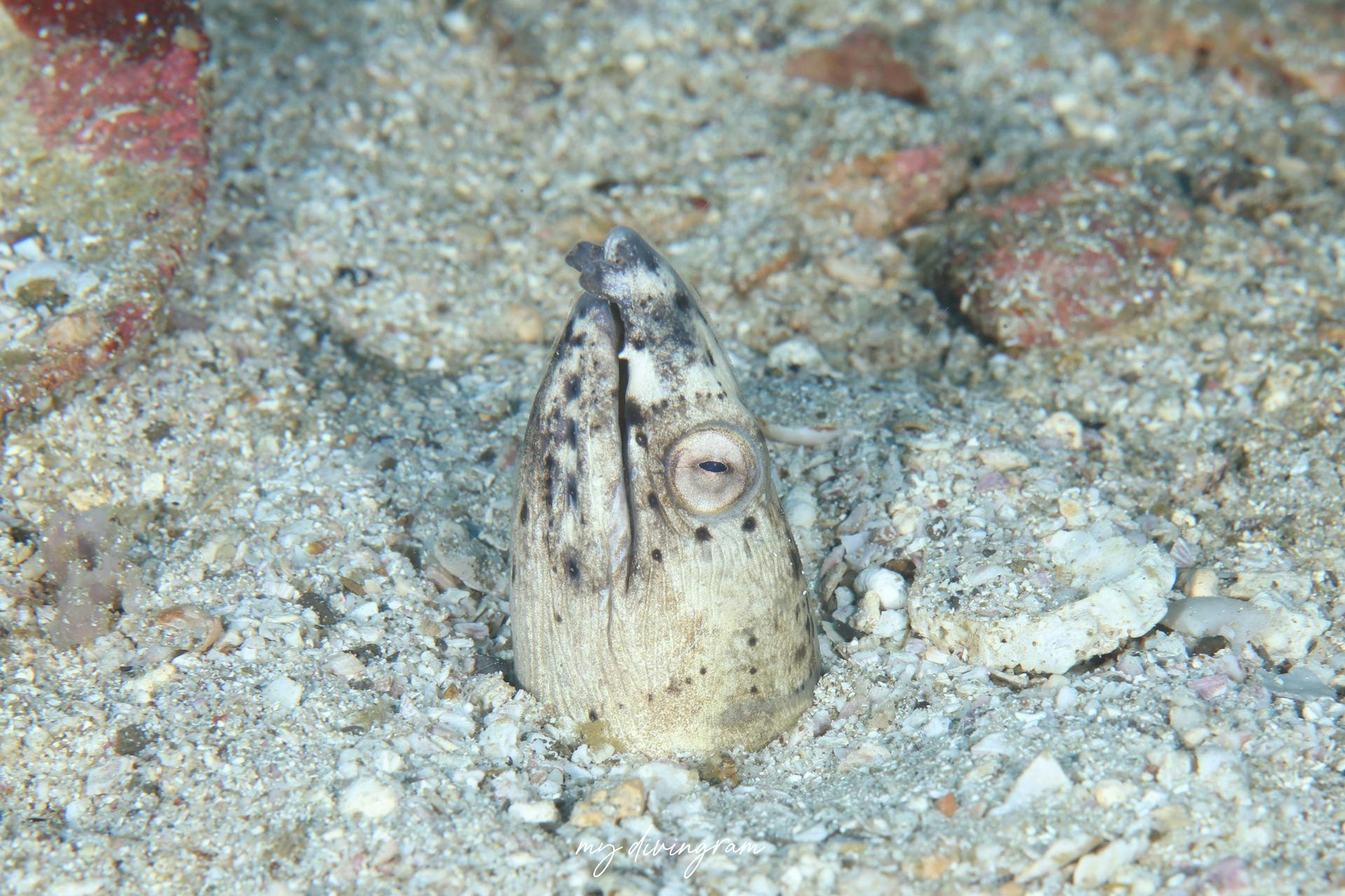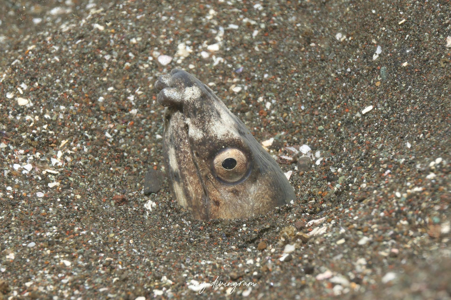 埋まってるときは猫目ですが泳ぐと普通の目になるんですね。