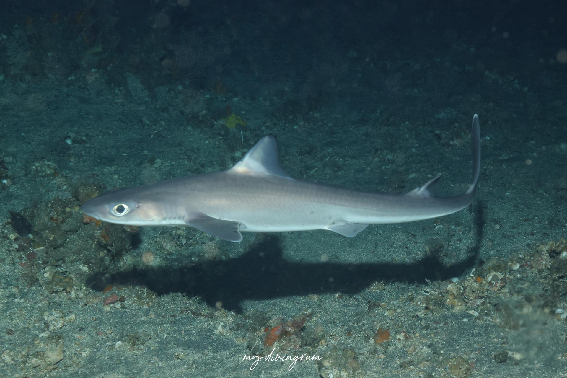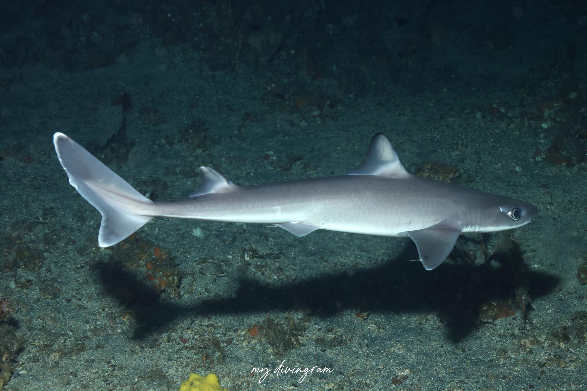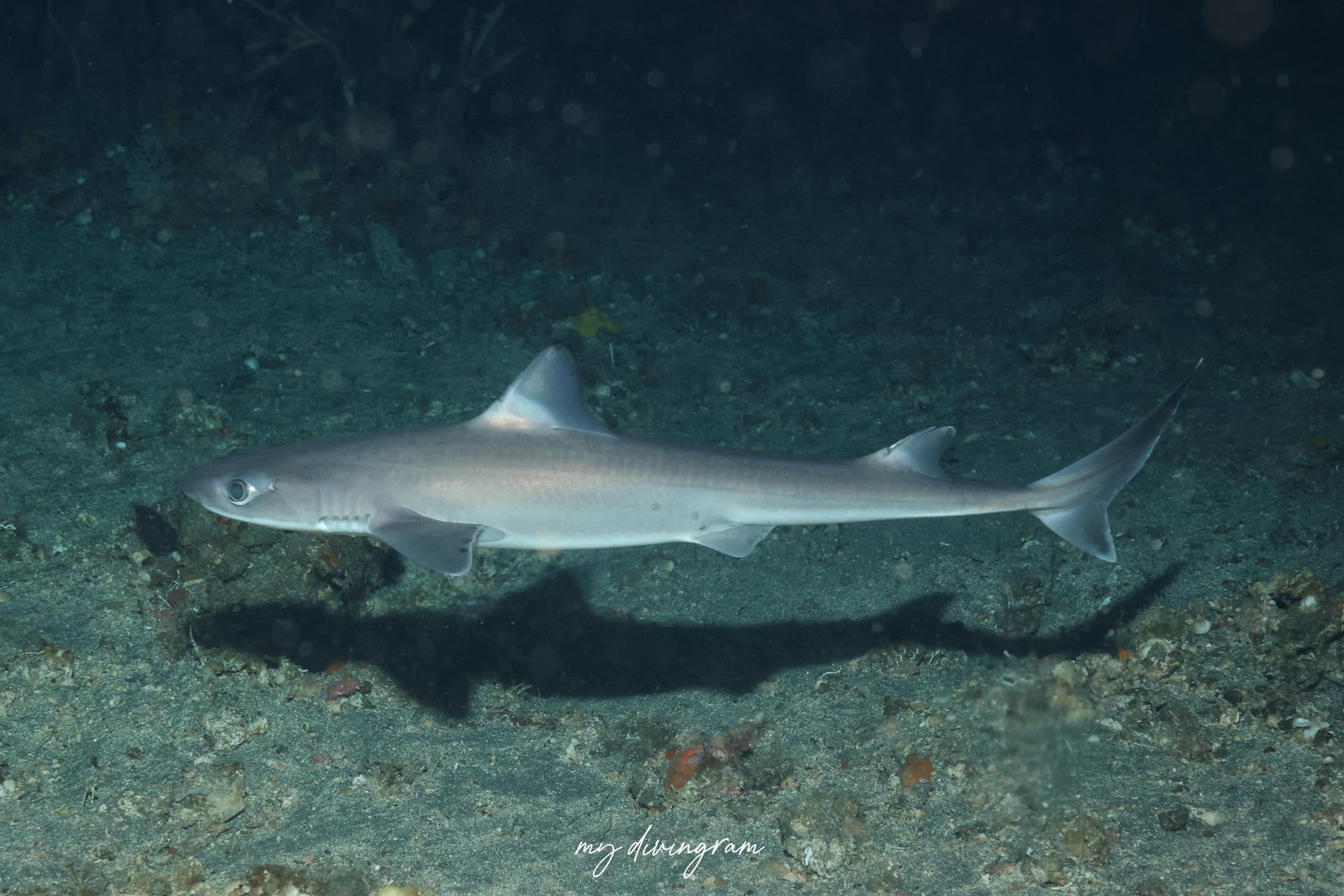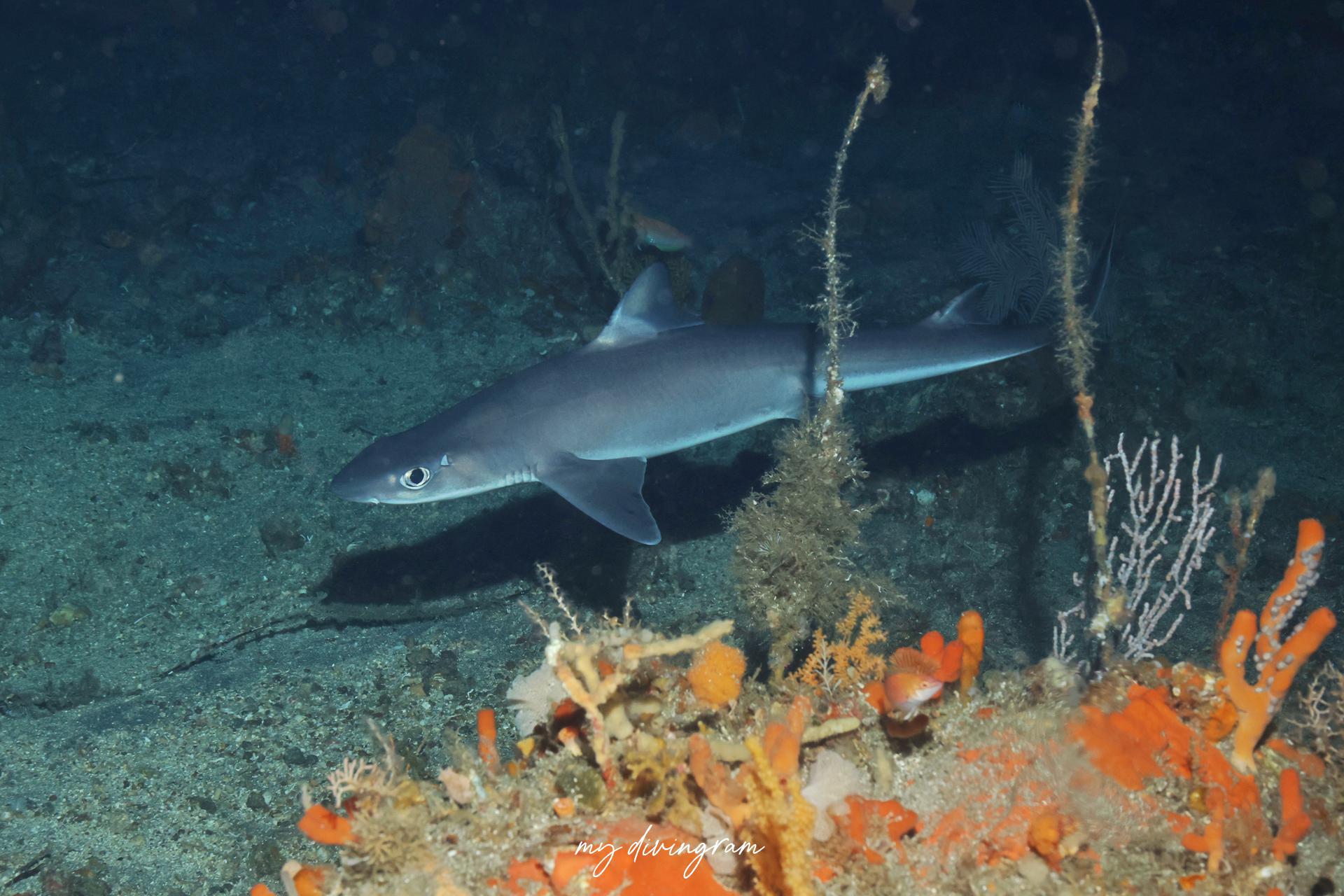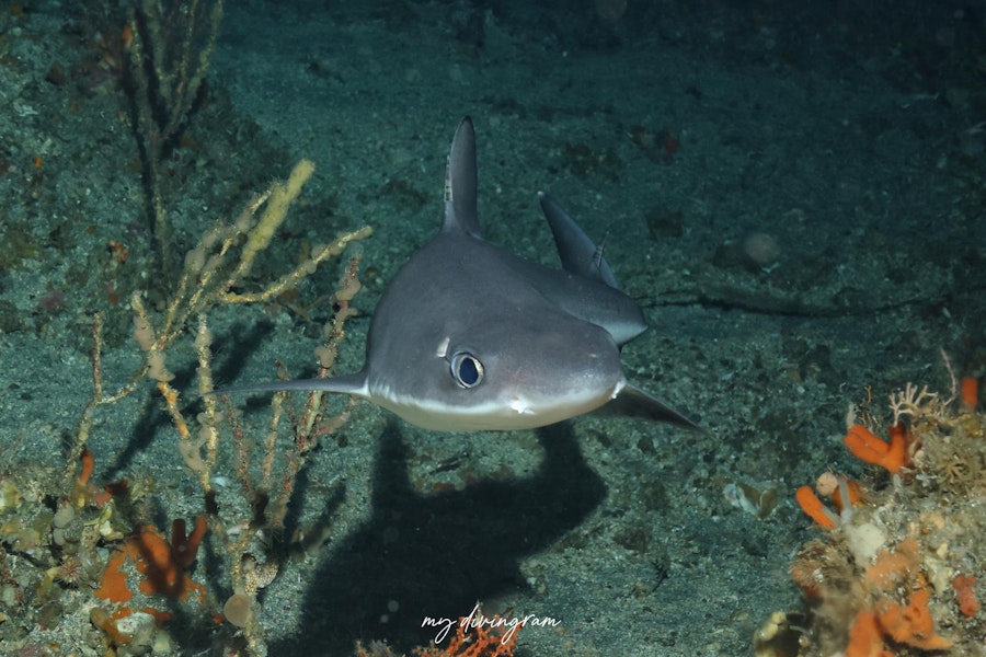 2025年の夏は目撃情報が増えており、ライトに寄ってくるのか、この日はどこで降りてもフトツノザメ3~4匹に巻かれました。