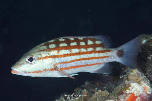 フエダイにしては珍しく赤い格子状の模様を持つのが特徴です。