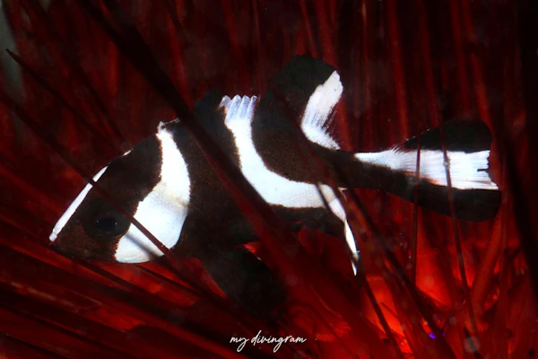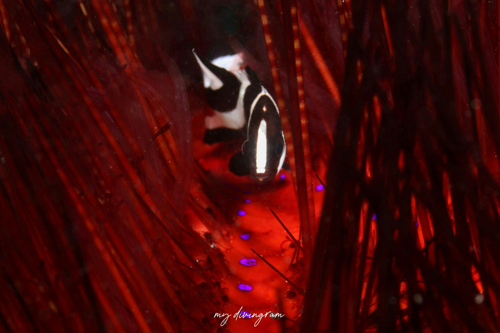 アカオニガゼの斑点がパンくずみたい。ヘンゼルとグレーテルです。