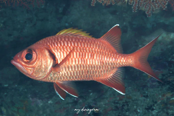 下顎が突出している → アカマツカサで確定。背鰭が黄色いのも特徴かも。琉球列島か小笠原のみに生息。
