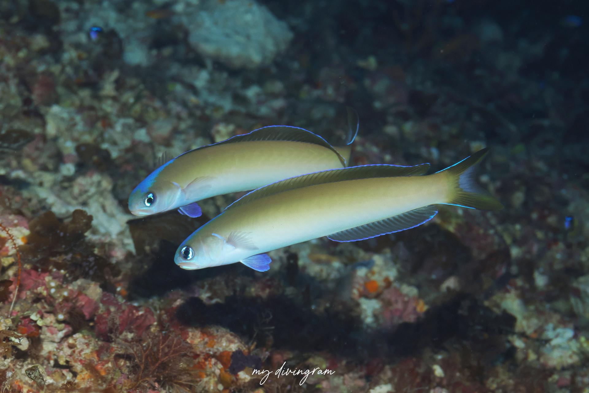 深場のサンゴアマダイの仲間の中ではやや浅場かついろんなところで見られる印象です。
