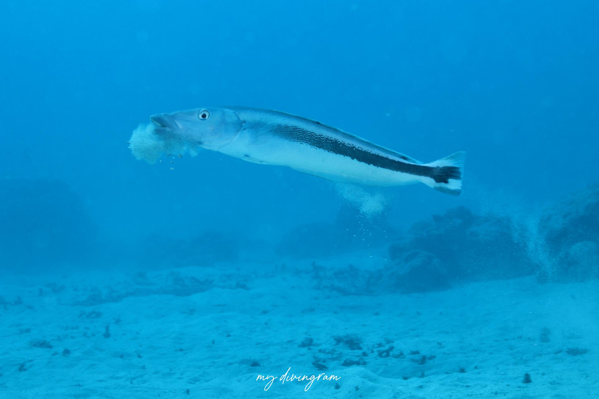 沖縄で潜っていると遥か彼方をへろへろ~と通り過ぎていくシーンをよく見かけます。