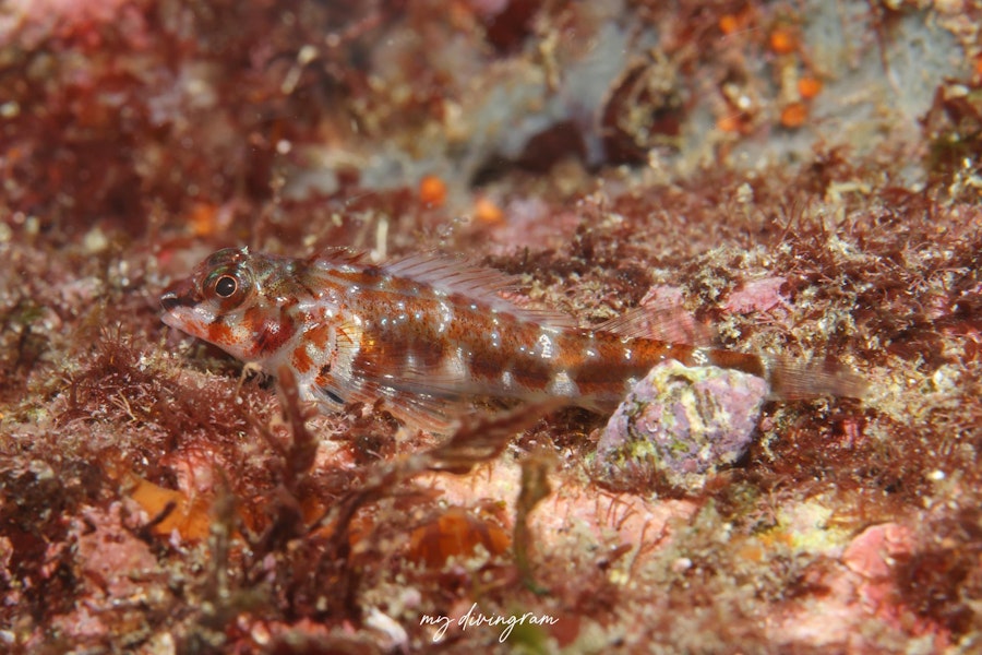 ヘビギンポ科の中でも比較的小型で、比較的浅場 (-1~3m) に生息しているようです。