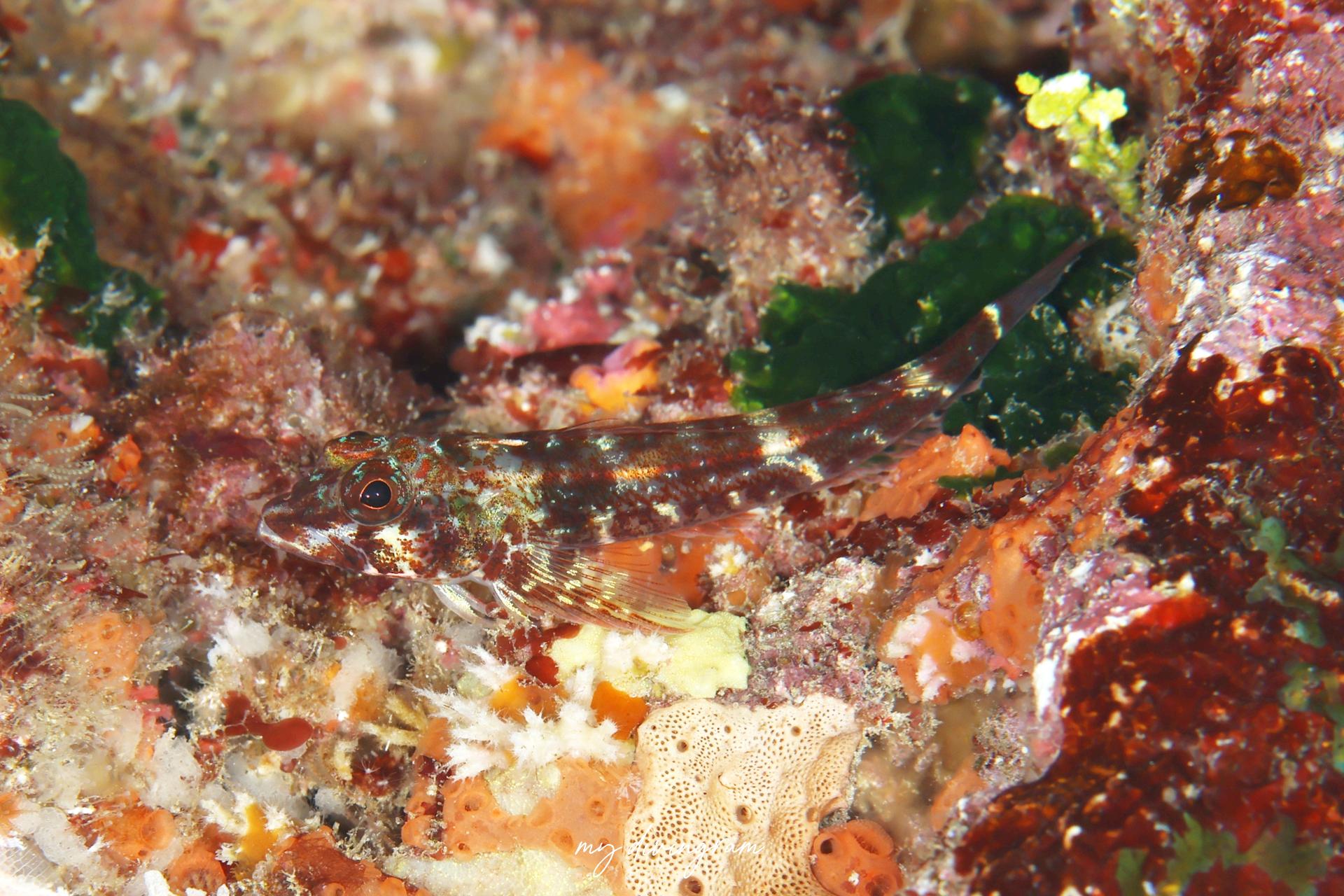僕は水中でカスリヘビギンポのように見えていましたが、後で確認すると口が大きいもののカスリほどではない!ということでベニモンだと発覚したのでした~~