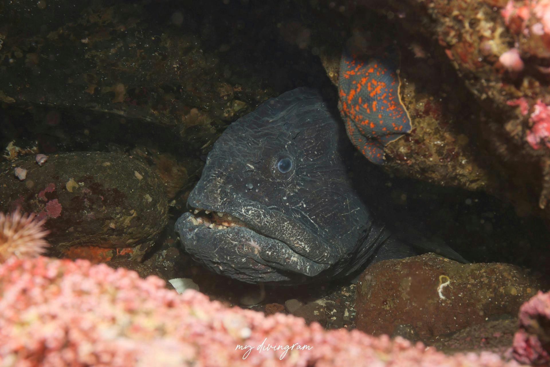 某ショップのガイドさんから、オオカミウオは見られるうちに見に行った方が良いと言われ、次のシーズンに早速見に行ってきました!