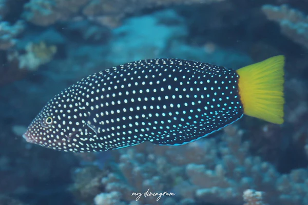 メスはクロフチススキベラとよく似ていますが、尾鰭がすべて黄色いことで見分けられます。