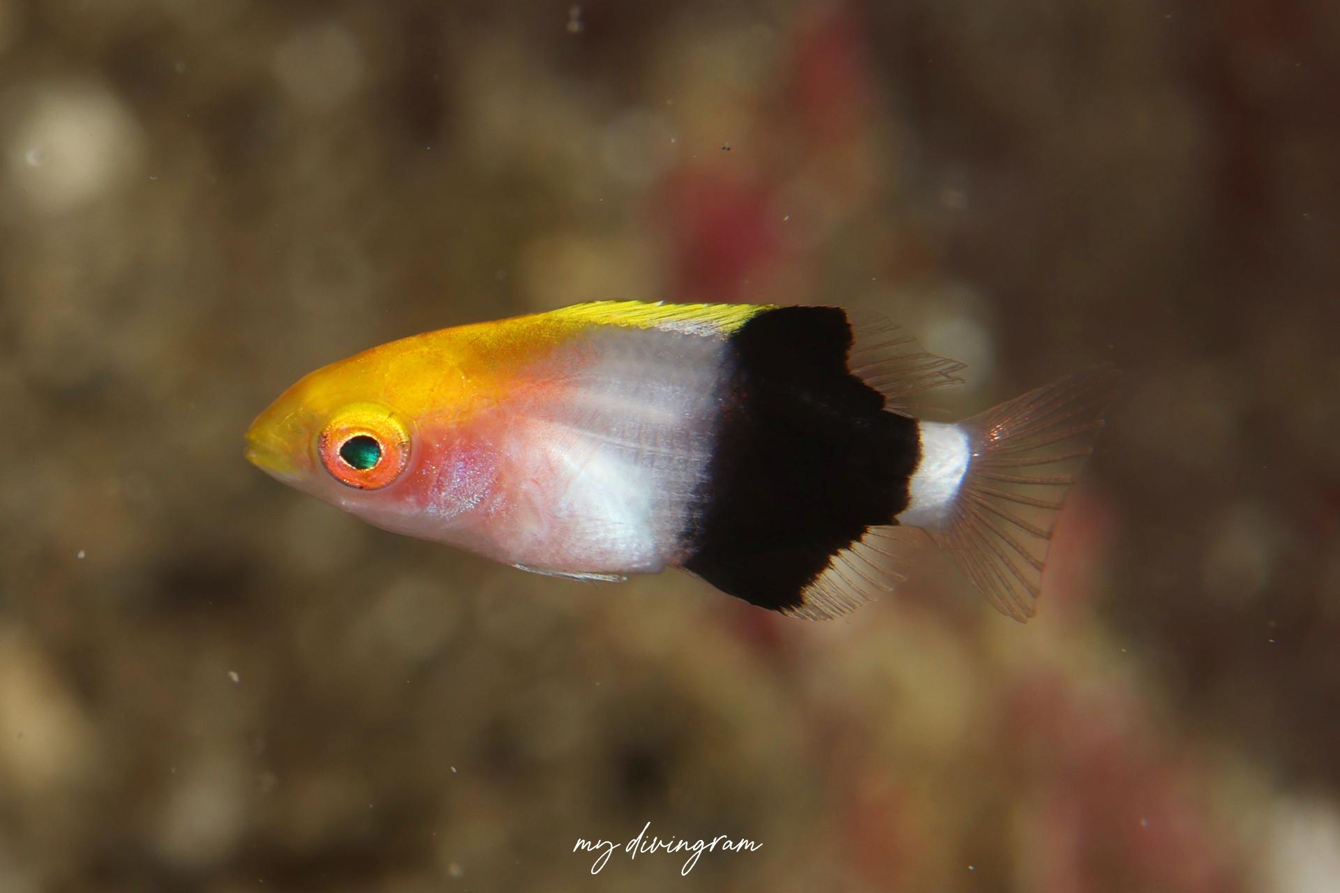 幼魚はヒレグロベラと似ていますが、体側後方の太い黒色横帯が1本しかないことで見分けられます。