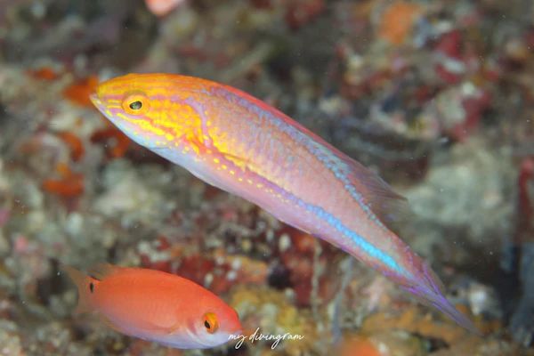 メスも同様にオレンジ色の湾曲したラインが走りますが、幼魚はツキノワイトヒキベラと酷似しており見分けることが困難なようです。