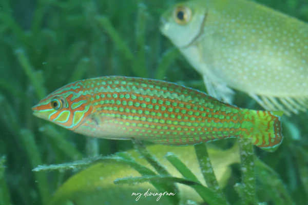カザリキュウセンと似ていますが、眼の周りの模様が異なります。